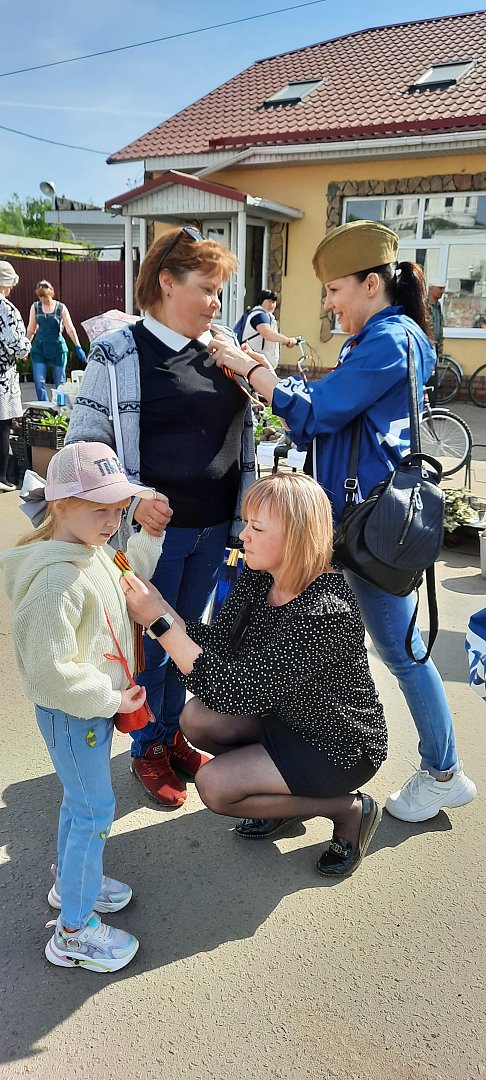 Члены партии, волонтеры, общественники, сотрудники отдела культуры, центральной и детской библиотеки раздавали ленточки жителям района в магазинах, подходили к машинам, да и просто прохожим, поздравляли с праздником, Днем Победы. Создавали настроение звучавшие песни военных лет. Георгиевская ленточка стала не просто символом Победы 1945 года, но и символом мира. С особой теплотой принимали ее родственники бойцов СВО, в ней надежда на скорый мир и возвращение ребят домой. Георгиевская ленточка была передана также во все муниципальные образования Романовского района, чтобы 9 Мая ее смогли повязать все жители района на торжественные мероприятия. Участники акции неизменно напоминали также и правила ношения ленточки, что ее носят на левой стороне груди, либо в машине повязывают, призывали не использовать как декор сумки, не располагать ленту на любых элементах одежды ниже пояса - обуви, брюках, не вплетать в волосы. Акция завершилась на патриотической ноте общим исполнением всеми участниками песни «День Победы».