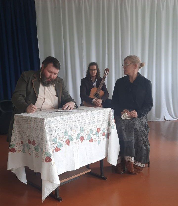 В уютном зале детской школы искусств для воспитанников и педагогов был показан спектакль «Легко быть сильным» артистами народного театра «Линия» совместно с учениками школы, создавшими инструментальное сопровождение постановки. Мастеру театральной пьесы, писателю, прозаику, драматургу Антону Павловичу Чехову в этом году весь мир отметил 165 лет со дня рождения. Спектакль «Легко быть сильным» поставлен по произведениям «Дура, или Капитан в отставке», «Кухарка женится», «Размазня» в исполнении артистов театральной студии В. Трафимовой, М. Хохловой, Р. Воронина, В. Саяпиной. Творческую камерную атмосферу спектаклю создали ученики ДШИ Роман Кутняков, Андрей Коротков, Матвей Кабанов, Артем Пугач (педагоги Л.И. Сотникова, Г.Г. Балаян, В.А. Еременко). Позже этот спектакль артисты показали в зале детской библиотеки, где его посмотрели обучающиеся Романовской СОШ им. И.В. Серещенко. И сегодня понимаешь, насколько Чехов современен и каждая его пьеса, рассказ продолжает поднимать вечные темы, и его «маленький человек» в условиях обстоятельств, перед выбором всегда актуален и современен.
