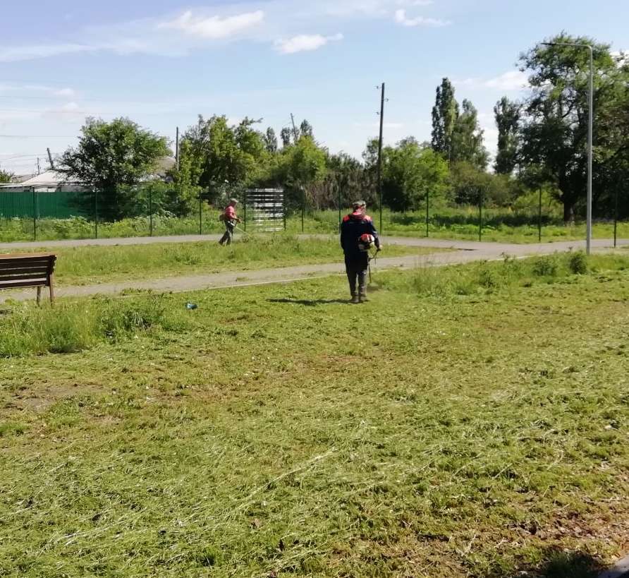 Сотрудниками администрации, отдела культуры и кино, управления образования, КЦСОН проведены работы по уборке новой территории - в парке отдыха им. А.И. Романенко – проведен покос травы, прополка клумбы, планировка грунта.