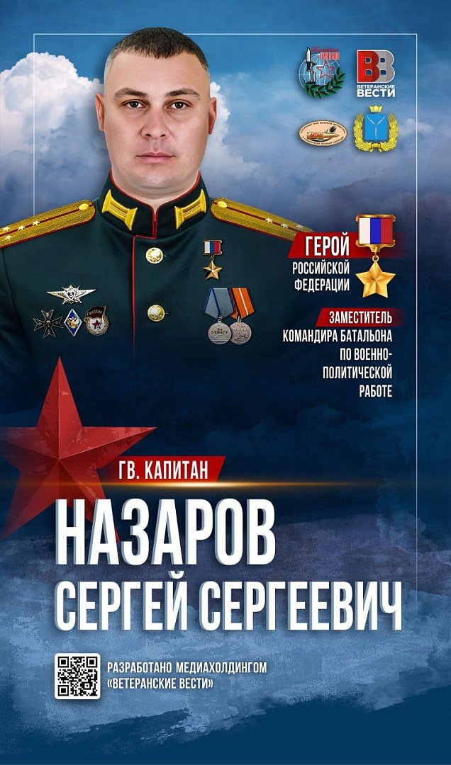Подробнее ознакомится с биографиями и подвигами Героев России можно на сайте (https://xn--64-6kcan3adlwfz2bym.xn--p1ai/heroes/?HERO_TYPE=530919).