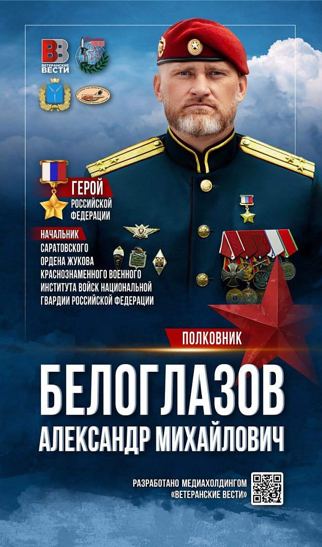 Среди размещенных - восемь участников СВО: начальник Саратовского военного института войск национальной гвардии, полковник Александр Белоглазов, подполковники Мирлан Джумагалиев и Александр Аксёнов, майор Тимур Дудкин, капитаны Сергей Назаров и Никита Палазник, старший лейтенант Александр Потапов, рядовой Арслан Султанов.
