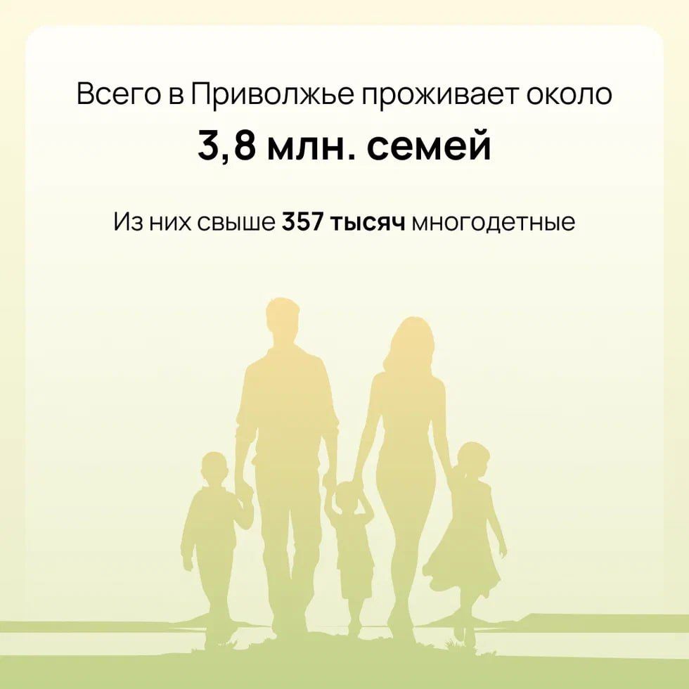 Сейчас в Приволжье проживает порядка 3,8 млн семей, из них свыше 357 тысяч многодетные. Для них в регионах реализуется более 400 мер социальной поддержки.