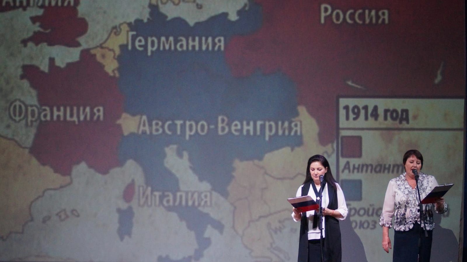 Все это и многое другое постарались донести до аудитории организаторы этого мероприятия. Экскурс сопровождался демонстрацией документальной хроники – «Сараевский инцидент и боснийский серб – Гаврило Принцип», «Крепость Осовец - Атака мертвецов», «Брусиловский прорыв», «Первые танки», «Верденская битва», «Белые голубки - сестры милосердия». Немало героических страниц в историю Первой мировой войны вписали маршал К. Рокоссовский, генерал А. Брусилов, командир В. Котлинский, сестра милосердия Р.М. Иванова. Сопровождение экскурса организовал руководитель творческого объединения “Кадры +” Н. Аленькин. Звучали тематические музыкальные композиции в исполнении А. Булдыгиной, В. Брюткина, Т. Кулаевой, А. Дрюк. Участники народного драматического театра «Линия» представили отрывок из спектакля «Целитель», разыграв сцену, в которой Анна Ланская – сестра милосердия из Мариинской общины выхаживала в госпитале раненого. Минутой молчания почтили память тех, кто отдал и отдает свои жизни в борьбе за Отчизну.