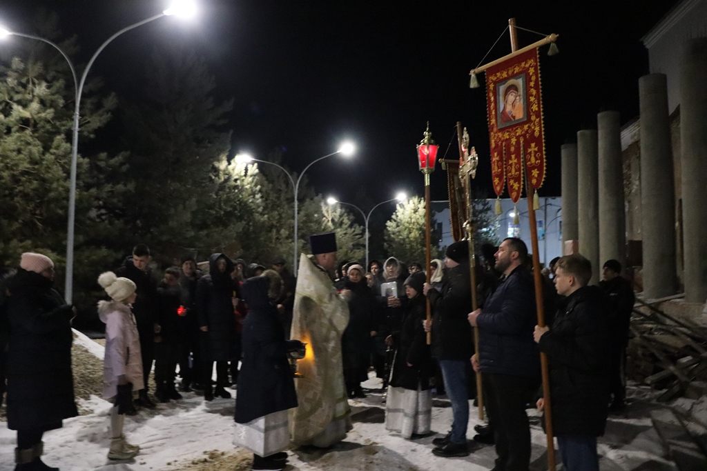 После богослужения крестным ходом прошли вокруг храма. Было зачитано Рождественское послание Патриарха Московского и всея Руси Кирилла, и затем настоятель наградил по итогам года строителей, которые трудятся над восстановлением исторического облика храма, благодарственными письмами - А.А. Акопян. А.М. Падоян и А.М. Пилосян.