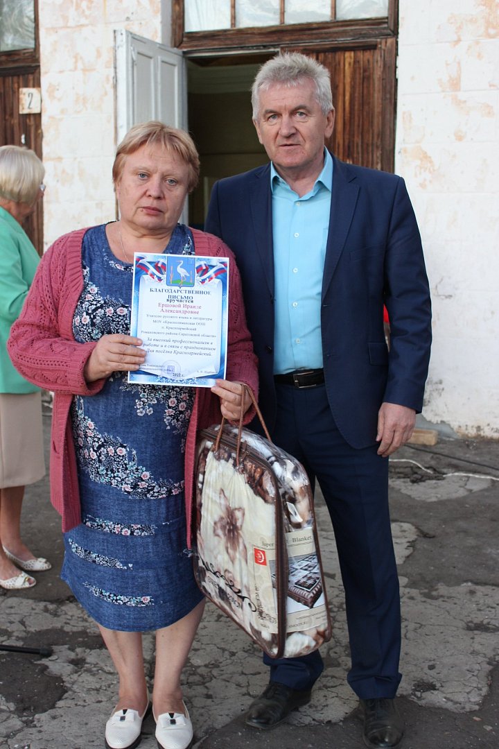 В этот день праздник открытия ДК совпал с Днем села, а это добрая традиция отмечать людей в различных номинациях. Грамоты и ценные подарки получили: одна из старейших жительниц села В.А.Порохова (86 лет), семья, в которой родилась малышка, Марата Хусейнова и Рады Адлейба; семья-юбиляры Анатолия и Ольги Арюшиных и самое благоустроенное домовладение Алексея и Натальи Курбановых. Руководство района отметило грамотами за высокий профессионализм в работе и в связи с празднованием Дня поселка Красноармейский - начальника почтового отделения Л.В.Скворцову, соцработника ГАУ СО КЦСОН Н.Н.Климонтову, медсестру Н.В.Курбанову, технического работника СДК В.А. Шехматову, заведующую Красноармейской сельской библиотекой М.М. Никитушкину, заведующую Красноармейским СДК Г.В.Ряст, воспитателя МДОУ «Детский сад «Березка» Г.И. Решетняк, заведующую МДОУ «Детский сад «Березка» Е.Н. Ойкину, учителя русского языка и литературы МОУ Краснолиманская ООШ И.А. Ершову, директора МОУ Краснолиманская ООШ Н.А. Масюкову, учителя начальных классов Краснолиманской ООШ М.А. Ойкину; за активную гражданскую позицию А.П. Хахулина. Концертные номера подарили артисты районного Дома культуры и участники художественной самодеятельности Красноармейского СДК А.Булдыгина, А.Боброва, Н.Журавлев, У.Адлейба и А.Сердобинцева, В.Брюткин, А. Дрюк, ансамбль «Красавицы», ансамбль «Экспромт», театр «Линия» и другие. Вечер продолжался концертной программой, для всех жителей работала торговля.