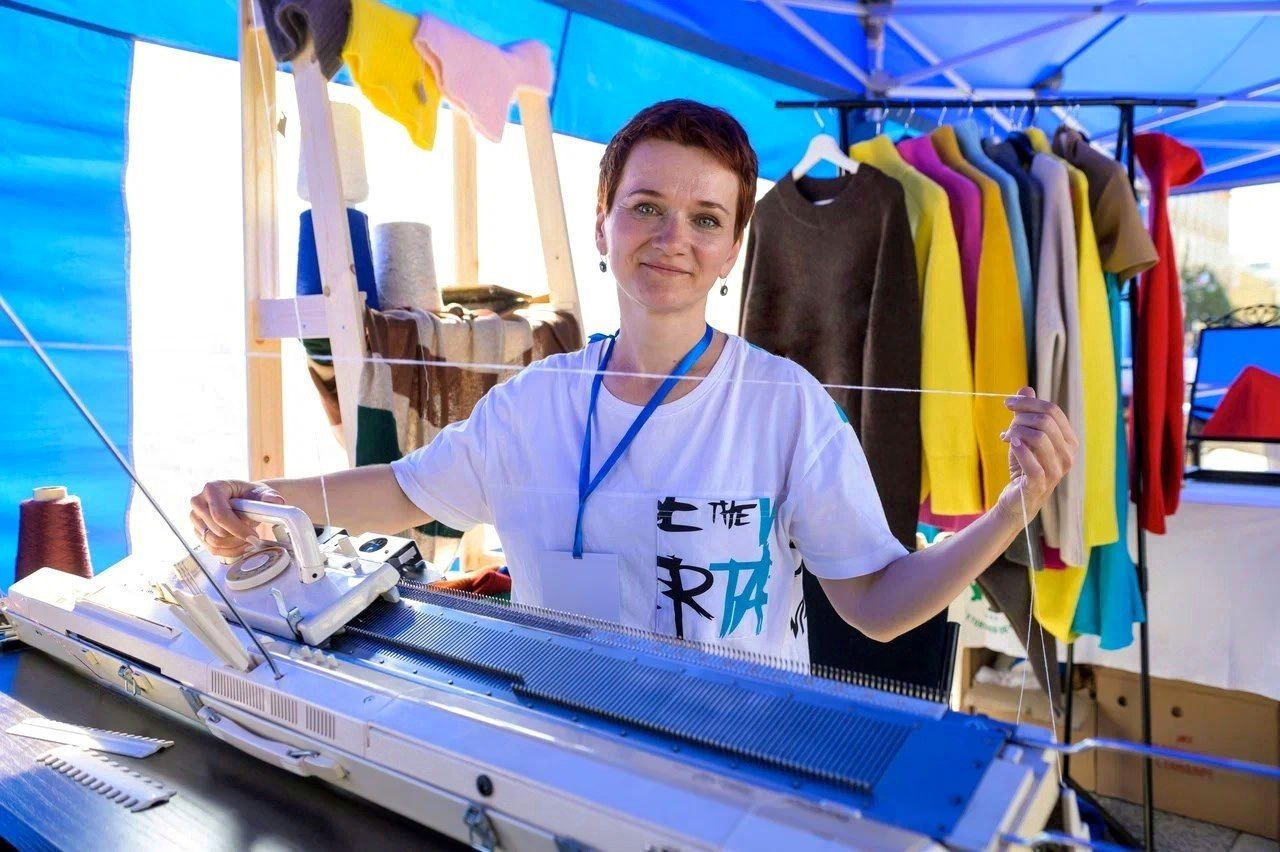 Два года подряд самозанятая принимает участие в фестивале «Палитра ремесел» на площадке «Инновация», демонстрируя коллекции свитеров и процесс их создания с использованием вязальной машины. Также с успехом представляет свои коллекции в рамках показов мод.