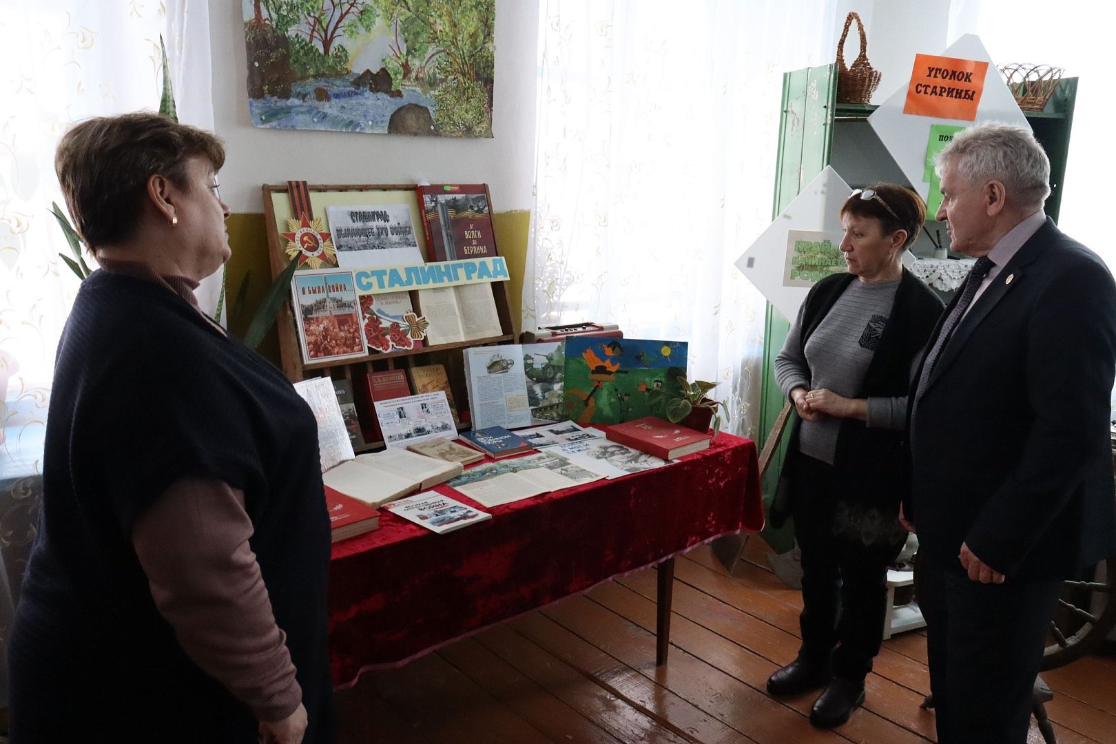 А.И. Щербаков и Л.А. Дедова перед собранием посетили местную библиотеку, ознакомились с выставками, посвященными памятным историческим датам, осмотрели библиотечный фонд, а также состояние здания библиотеки.