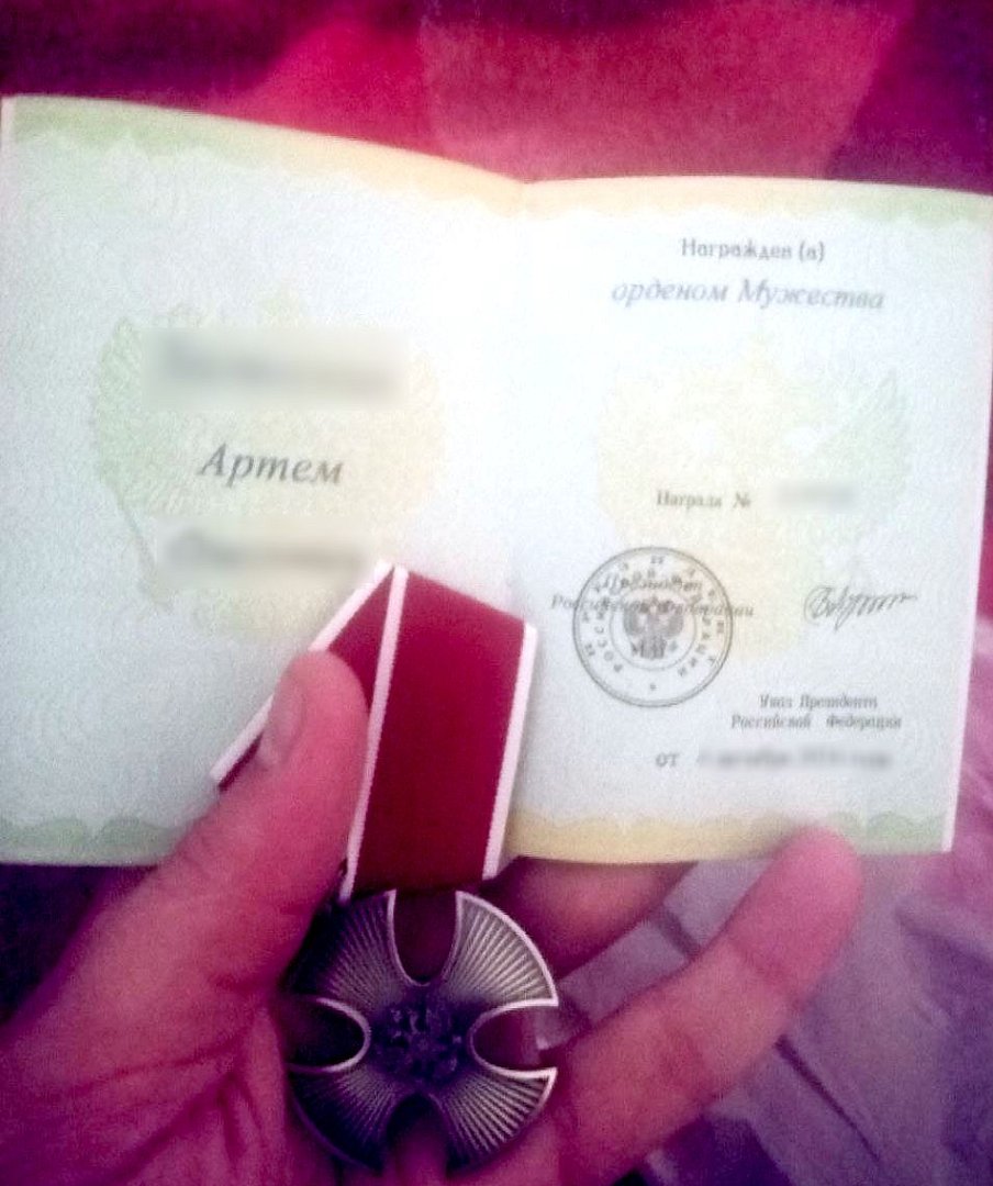 Уже после ранения «Музыкант» вновь вернулся в зону проведения СВО, к исполнению боевых задач, к своим боевым товарищам. Он вновь, несмотря на ранение, встал на защиту Отечества. И недавно поделился с нами важной новостью. За проявленную самоотверженность, за отвагу и решительность при исполнении воинского долга указом президента Российской Федерации В.В. Путина Артем был награжден орденом Мужества.