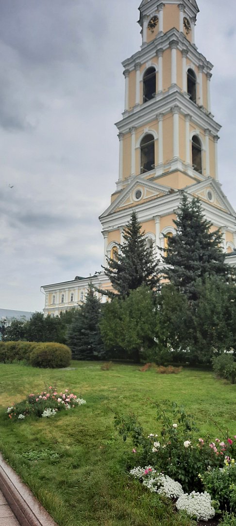 Раннее утро в Дивеево выдалось погожим и по-летнему теплым. Необычное оживление царило на улочках, ведущих к Свято-Троицкому Серафимо-Дивеевскому монастырю: экскурсионные группы стекались к величественной колокольне. Мелодичный перезвон колоколов уже вещал о начале богослужения. Благоговейно входим в расписанную на Евангельские сюжеты арку колокольни, высота которой с кровлей и крестом составляет 70,3 м. Первоначально на ней были установлены часы, которые отбивали каждый час мелодию: «Пресвятая Богородица, спаси нас!».