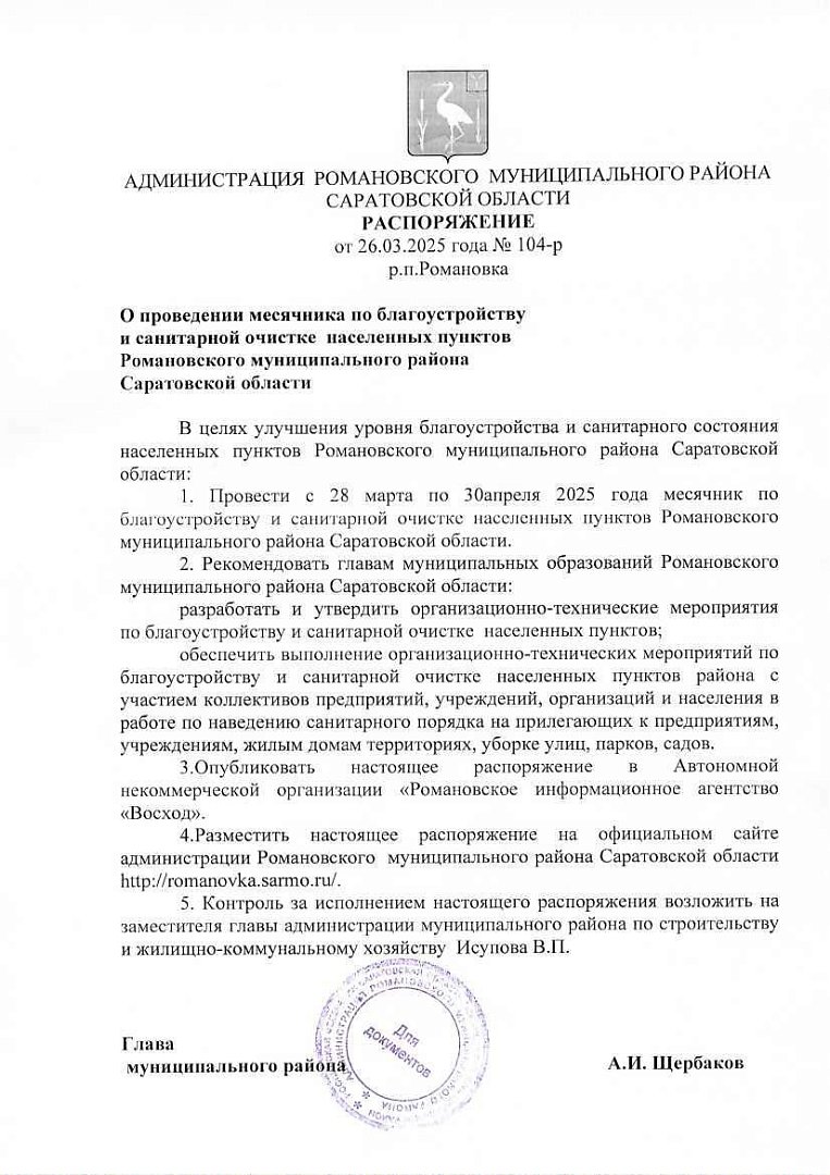 О проведении месячника по благоустройству и санитарной очистке населенных пунктов Романовского муниципального района Саратовской области