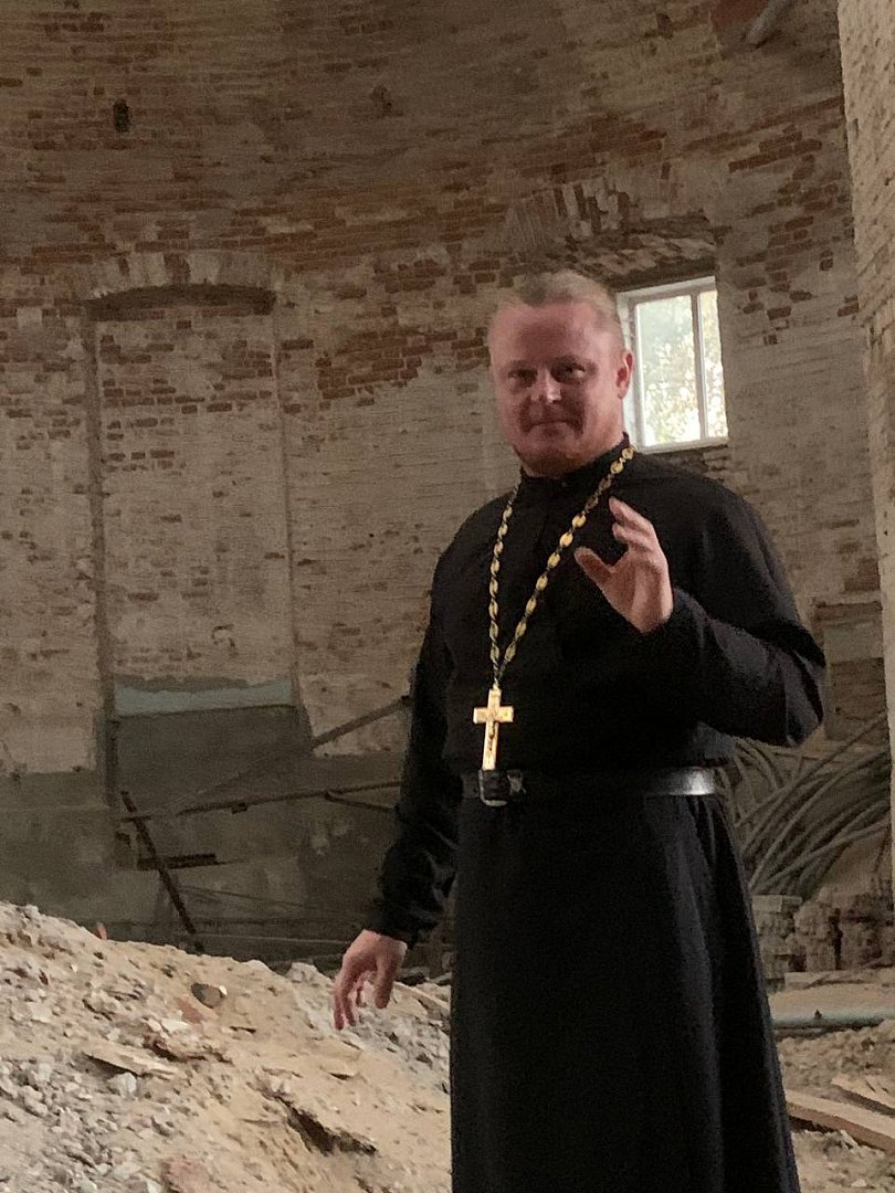О строительстве храма и благоустройстве территории рассказывает настоятель храма Рождества Христова иерей Павел Денисов