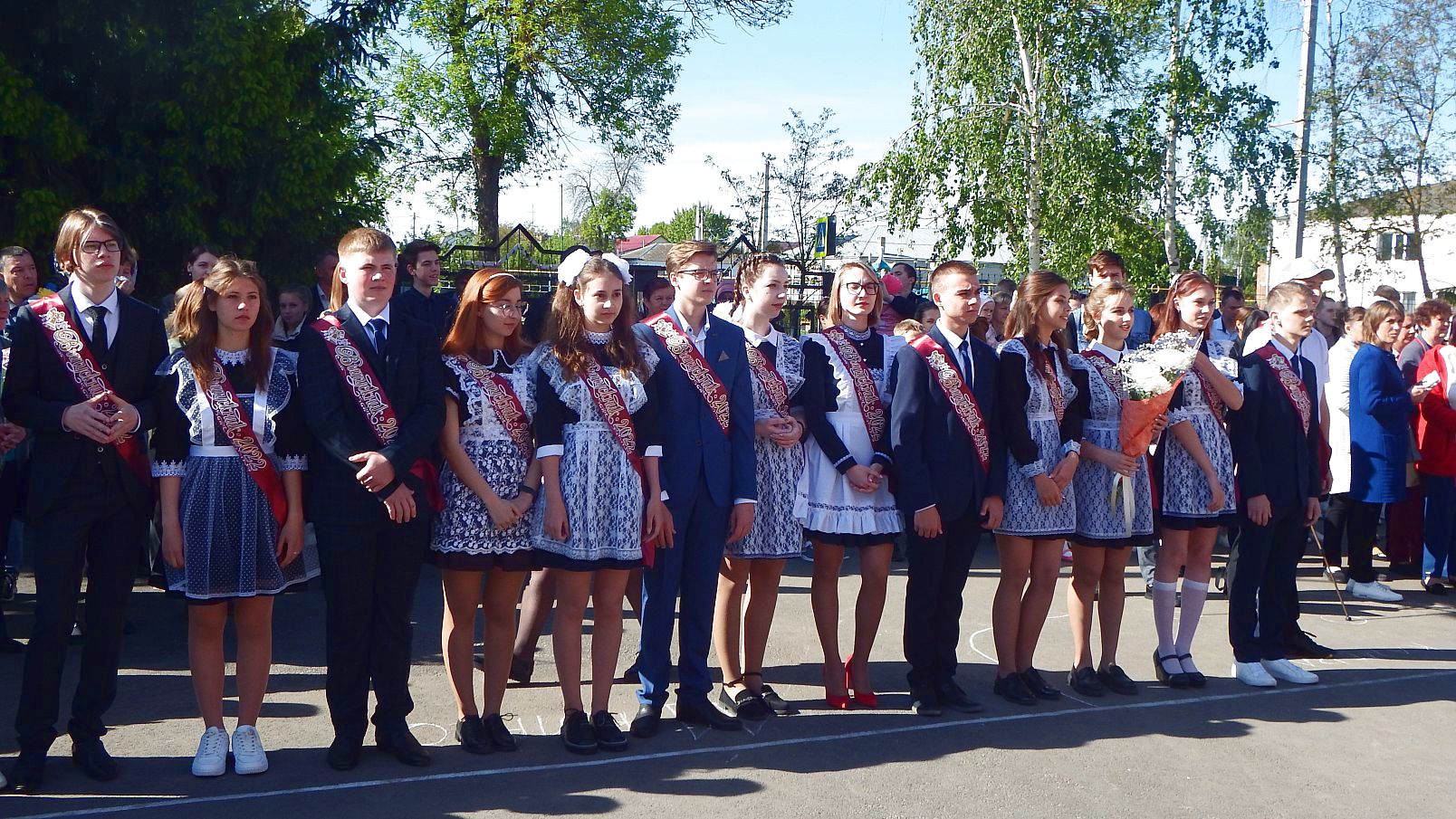 В этот солнечный денек прозвучало немало добрых слов. Напутствия и поздравления со вступлением в следующий этап жизни от учителей, слова благодарности и поддержки, с искренними слезами на глазах от выпускников школы. Были и творческие подарки: замечательный и трогательный вальс от 11-класников, яркий зажигательный флешмоб от выпускниц 9 класса и подарок-танец, немного грустный, от педагогов. Чувство, что часть этих ребят навсегда покидает родные пенаты, не оставляло, но, неразрывно другое чувство – любви ребят, настоящей, к этим учителям, к родным школьным стенам. Пусть оно проживет с ними всю жизнь. В добрый путь, новые жители нашей большой страны!