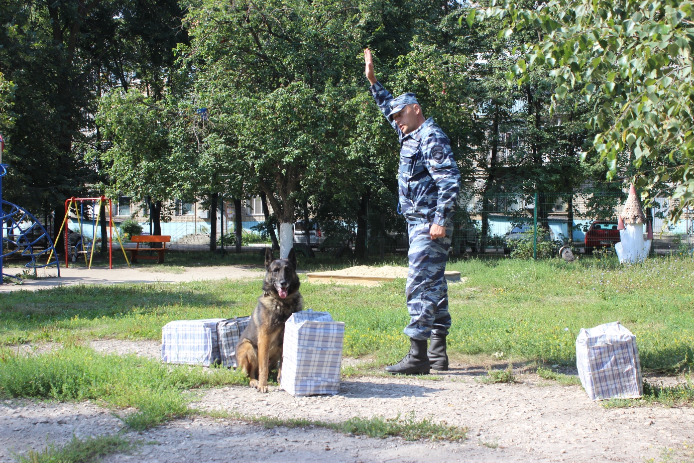 Инспектор-кинолог кинологической группы старший лейтенант полиции Игорь Дубровин и служебная собака Ден всегда желанные гости в центре «Семья». Овчарка как всегда безошибочно определила, в какой из сумок находится муляж, и позволила детям погладить себя.