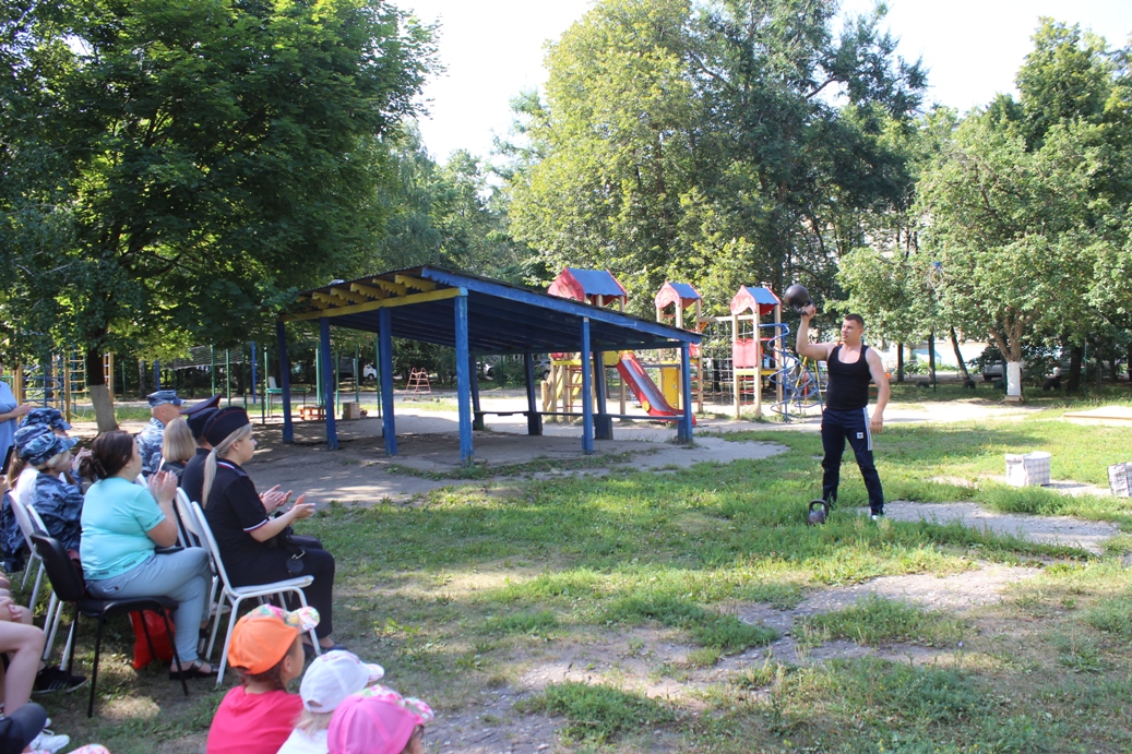 В свою очередь навыки владения гирей продемонстрировал инспектор (дорожно-патрульной службы) отдельного взвода ДПС ГИБДД младший лейтенант полиции Николай Тулянцев. Полицейский вызвал восхищение ребят.
