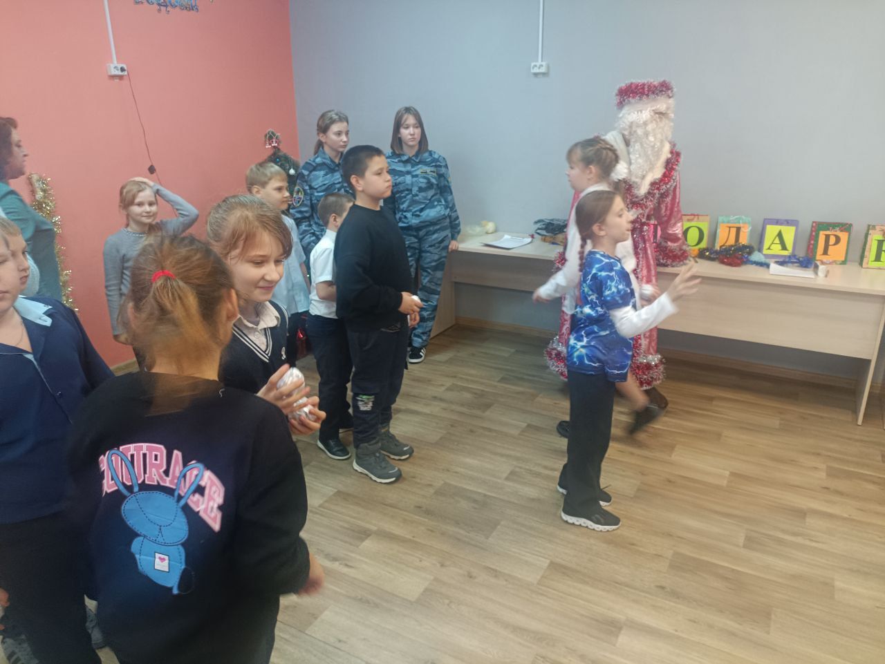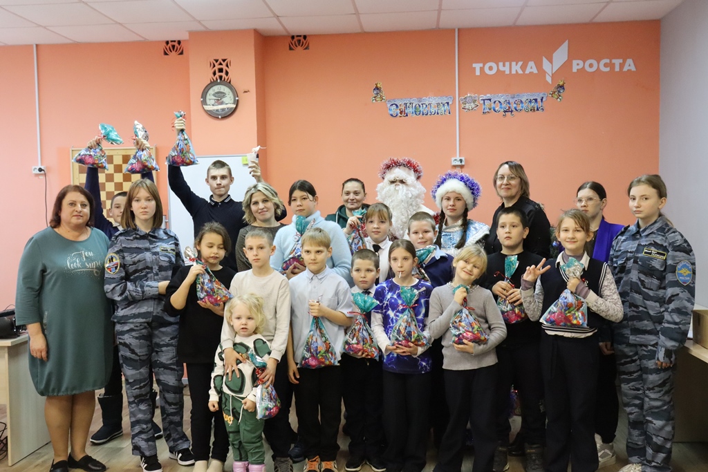 Елку, в которой принял участие полицейский Дед Мороз, организовали участники движения правоохранительной направленности «Юный друг полиции». Для ребят приготовили теплое выступление волшебных персонажей – Деда Мороза и Снегурочки, веселую конкурсную программу, задорные танцы. Директор школы С.А. Семенова поздравила детей и их родителей с праздниками, пожелала всем здоровья, благополучия и мирного неба над головой. От Общественного совета были вручены небольшие подарки со сладостями.
