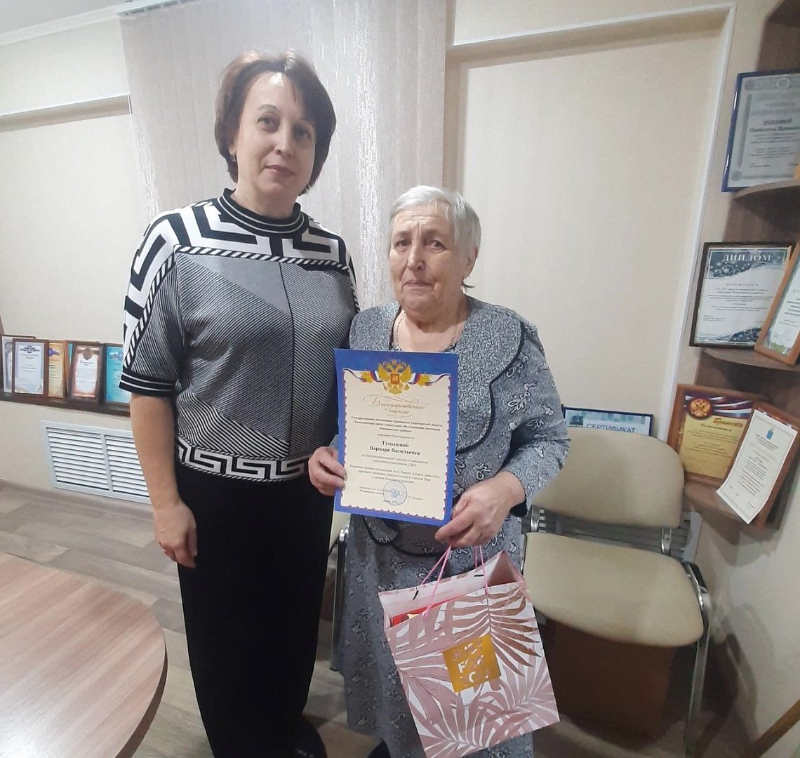 Так, в стороне не осталась и 78-летняя жительница с. Бобылевка, получатель социальных услуг Варвара Васильевна Тульцова, которая с любовью и заботой вяжет и передает теплые шерстяные носки для участников СВО. Вязать теплые носки для солдат она начала еще два года назад. За это время она согрела уже более ста бойцов. Ее заботливые руки все продолжают вязать. Директором ГАУ СО КЦСОН Романовского района С.П. Хохловой за благотворительную помощь Варваре Васильевне было вручено благодарственное письмо.