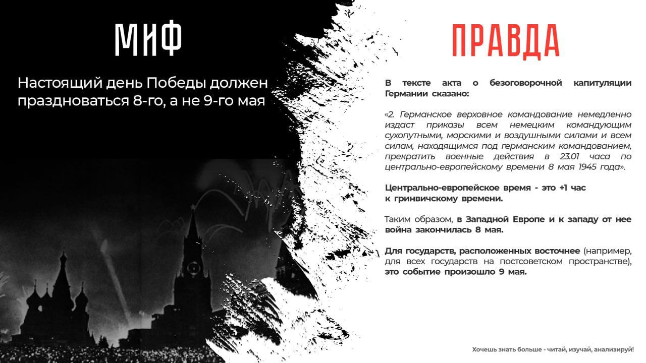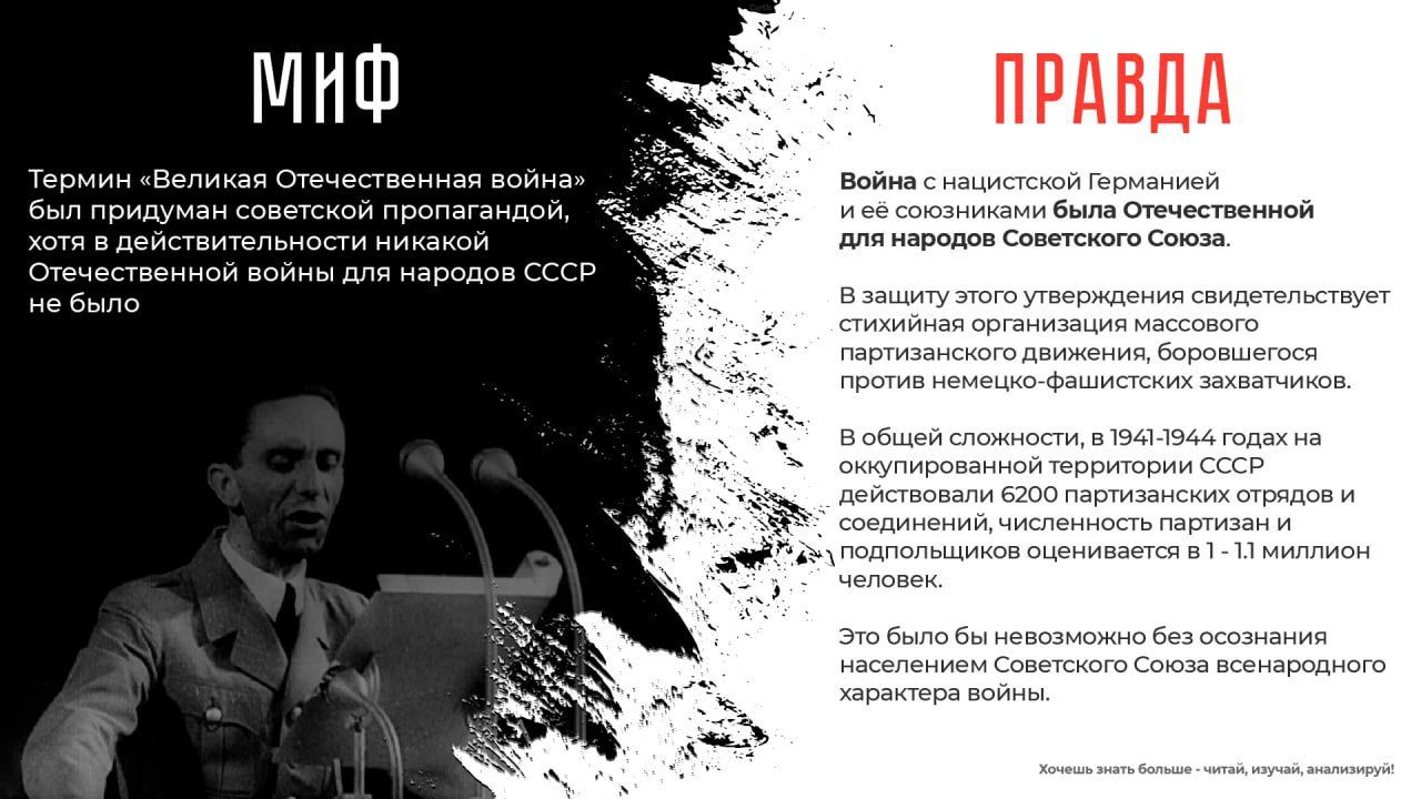 В год 78-й годовщины Победы в Великой Отечественной войне, МВД России проводит информационную акцию, которая направлена на недопущение фальсификации истории, опровержение активно внедряющихся в общественное сознание мифов.