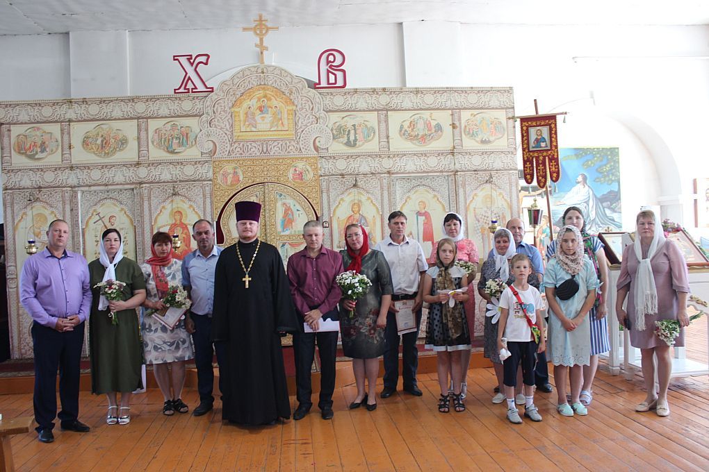 Торжественные и нарядные гости собрались после Божественной Литургии в храме. С праздником всех поздравил благочинный Романовского округа иерей Павел Денисов. Он пожелал супругам, чтобы их семьи крепли, чтобы в них была любовь и радость, чтобы ощущение счастья было постоянно, чтобы приоритеты были духовные, а остальное приложится им. «Будьте счастливы, будьте любимы, пусть Господь направит вас и пусть в жизни будет только спасительный путь», - отметил он. Праздник ежегодно проводится совместно с отделом ЗАГС по Романовскому району. В этот день супружеские пары поздравила начальник отдела Светлана Викторовна Сапрыкина и пригласила всех на памятную регистрацию. Она также со своим супругом Дмитрием приняла участие в празднике. Еще раз вновь перенеслись пары в тот день, когда поставили свою подпись в акте регистрации браков и создали свою семью. Для Г.В. и Л.Ю. Сапрыкиных это произошло 40 лет назад, для А.В. и М.В. Рязановых - 35; для В.А. и Н.В. Созоновых - 30; для М.И. и О.В. Миловых, А.И. и С.Н. Милюхиных, А.В. и О.В. Саяпиных, А.Н. и М.В. Елиных, Г.Г. и А.Я. Балаян — 25; А.Ф. и О.В. Шеиных, А.В.и О.И. Черниковых - 20. Для А.Н. и Д.Э. Капцовых это первый совместный юбилей. Отрадно, что пары возвращаются на праздник как Иван и Наталья Селиверстовы, и здесь в храме рады разделить их совместную радость от юбилейного события.