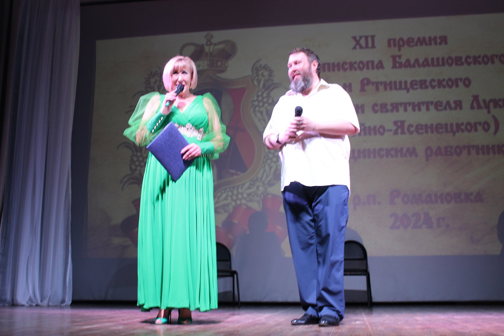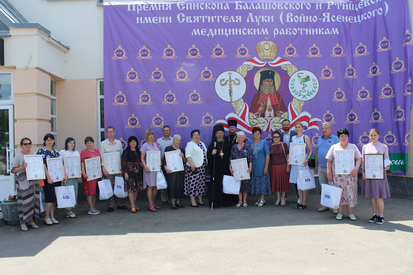И кульминация дня - вручение премии епископа Балашовского и Ртищевского Тарасия лучшим медицинским работникам Прихоперья. Гостей поприветствовал глава Романовского муниципального района А.И. Щербаков, отметив, что горды тем, что ежегодно принимают гостей на празднике. На торжественном мероприятии премию получили врачи, средний и младший медицинский персонал Аркадакского, Балашовского, Екатериновского, Калининского, Самойловского, Турковского, Романовского, Красноармейского, Ртищевского, Лысогорского районов нашей области. Архиерейскими грамотами награждены также врачи Балашовских больниц за сотрудничество в реализации проектов Балашовской епархии и студенты Балашовского медучилища за волонтерскую деятельность. На торжественном мероприятии был показан спектакль народным театром «Линия» «Путь к Богу», а в качестве музыкального подарка всем номинантам - выступление коллектива «Зоренька». Подводя итоги мероприятия, ведущие Р.А. Воронин и И.В. Сокол напомнили, что с удовольствием всех ждут следующим летом.