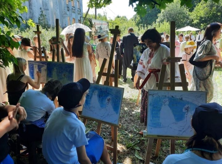 Ольга Петровна рассказала, что на фестивале все присутствующие погрузились в атмосферу прошлых столетий, знакомясь с историческими личностями и любуясь костюмами. В рамках фестиваля преподавателем художественной школы п. Тамала был проведен пленэр с детьми, на котором О.П. Кузьмина рассказала ребятам о художнике В. Борисове-Мусатове и оценила их копии к картине "Водоем".