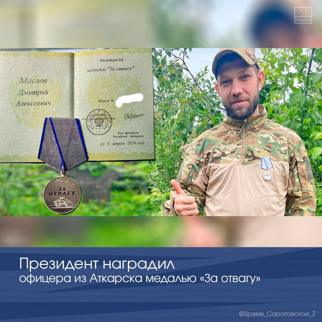 Президент России наградил аткарчанина Дмитрия Маслова медалью «За отвагу».