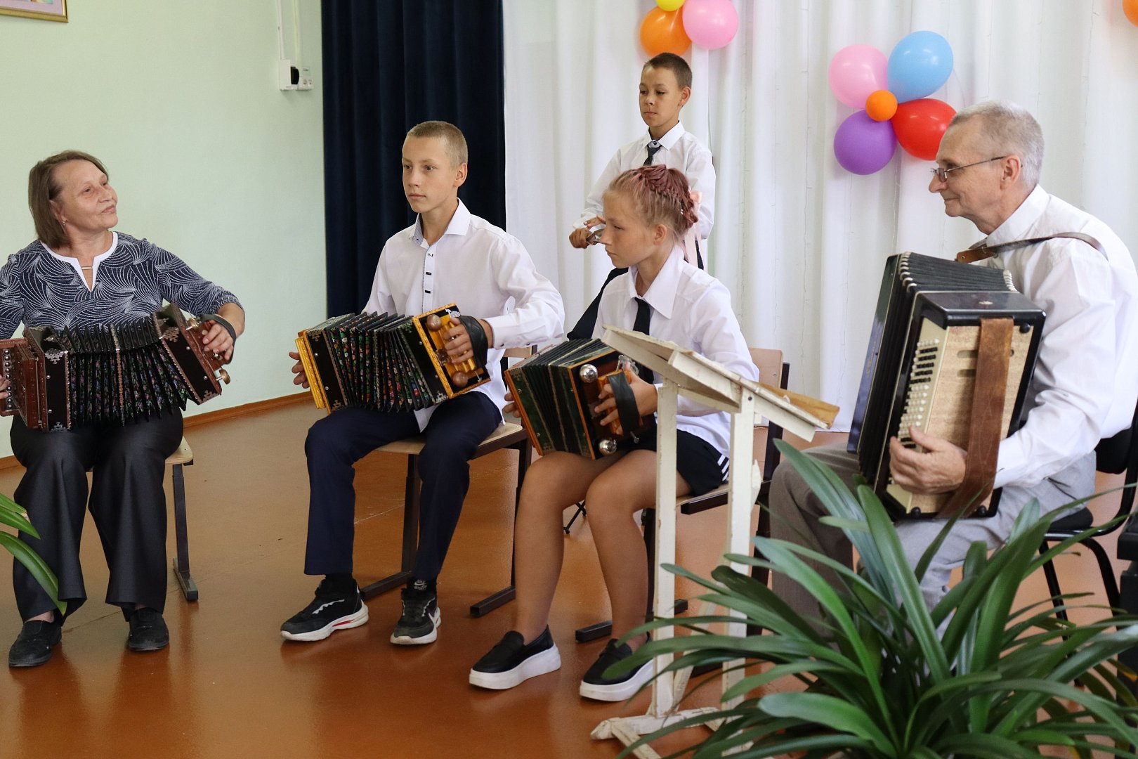 Рассказ о ДШИ гостям представили ведущие - педагоги школы Алена Михайловна Короткова и Влада Александровна Еременко. Перед гостями с композициями на различных музыкальных инструментах выступили Никита Власов, Кира Арюшина, Роман Кутняков, Тимофей Ревенко вместе со своим преподавателем Григорием Гегамовичем Балаян, Алла Антонова, Анна Харитонова, Артем Пугач, молодой педагог ДШИ и выпускница этой школы Влада Еременко, ансамбль саратовских гармошек «Романовский узор» (руководитель Светлана Валерьевна Войнова, концертмейстер Алексей Николаевич Бабкин, воспитанники Глеб Войнов и Анна Трафимова, Никита Власов). Зрителям была представлена игра на фортепиано, гитаре, аккордеоне, гармони.