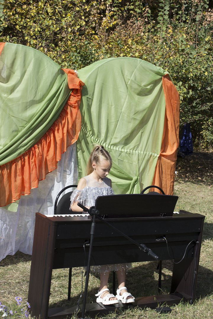 В этот день здесь, на поляне, звучала музыка самого Сергея Васильевича и классические произведения других композиторов в исполнении воспитанников детской школы искусств (Аллы Антоновой, Алексея Иноземцева, Виталия Щербакова, Алены Атапиной, Матвея Кабанова, Ивана Коновалова) и преподавателей (Анны Чаловой и Григория Балаяна, Татьяны Синельниковой, Светланы Войновой). Они погрузили нас в удивительный мир музыки, которая прозвучала здесь на поляне, как когда-то, вероятно, слышалась в воздухе из открытых окон усадебного дома. А постановка, показанная народным театром «Линия» в исполнении А. Козловой, Т. Штепа, А. Булдыгиной, позволила на несколько минут словно услышать голоса участников тех времен, когда между Сергеем Рахманиновым и Натальей Сатиной еще только зарождалась любовь, которую они пронесут через все годы.