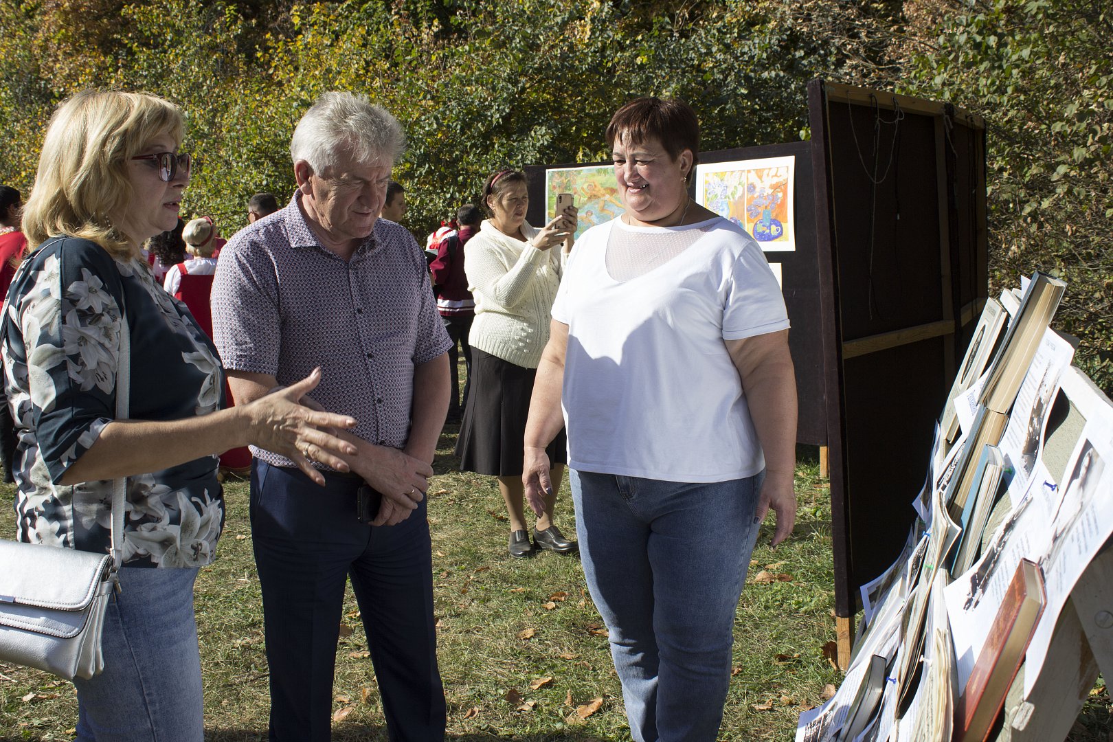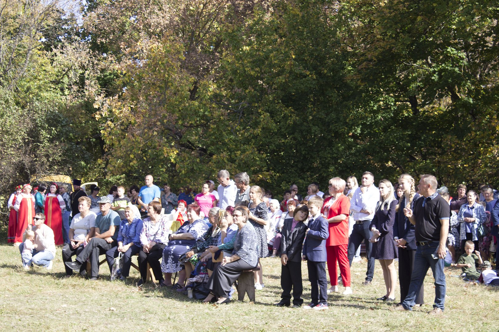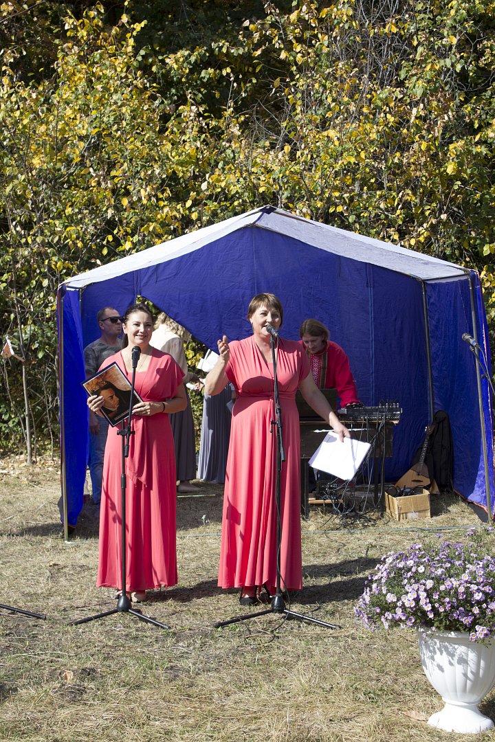 На поляне у храма для гостей были подготовлены выставки по жизни и творчеству С.В. Рахманинова от ЦБ им. И.И. Фешина, мастер-класс для юных читателей от детской библиотеки, фотозоны и угощение кашей, ароматным чаем, пирожками, которые мог попробовать любой из гостей. Юные художники ДШИ под руководством преподавателя О.П. Кузьминой на мольбертах работали над этюдами. Зрители уютно расположились на предложенных скамейках и просто на зеленой траве. Яркое солнышко и по-летнему теплая погода заставляли забыть, что на календаре октябрь. В самом начале мероприятия гостей поприветствовал настоятель храма в честь Живоначальной Троицы иерей Богдан Ганцелевич, отметив, что рады приветствовать гостей в Бобылевке. Он подчеркнул, что Рахманинов никогда не терял связи со своей Родиной и всегда она была в его сердце, он старался помогать и поддерживать Россию даже в годы войны, переводя все свои гонорары на пользу фронту.
