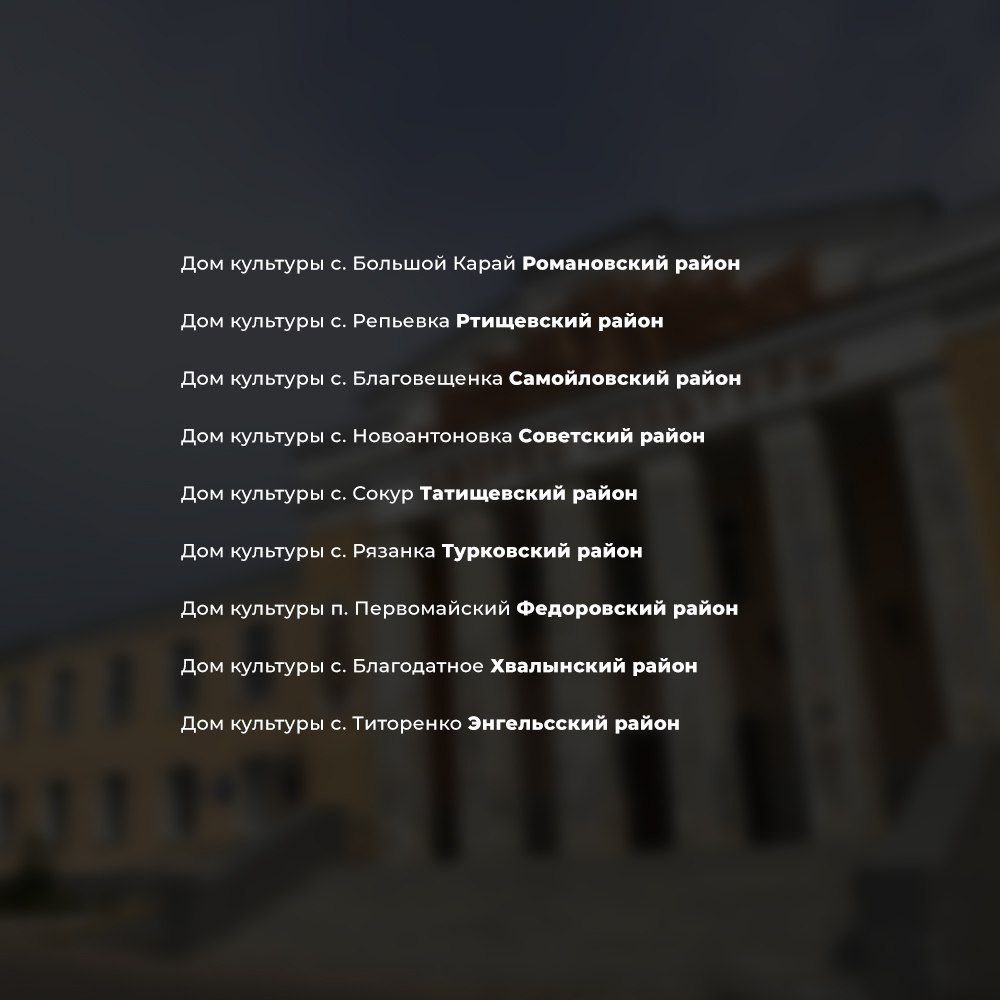 «В этом году продолжим на территории Саратовской области ремонт домов культуры в селах, – отметил губернатор в своем ТГ-канале. - Укреплять материально-техническую базу сельских домов культуры начали несколько лет назад. За это время удалось отремонтировать порядка 200 объектов».
