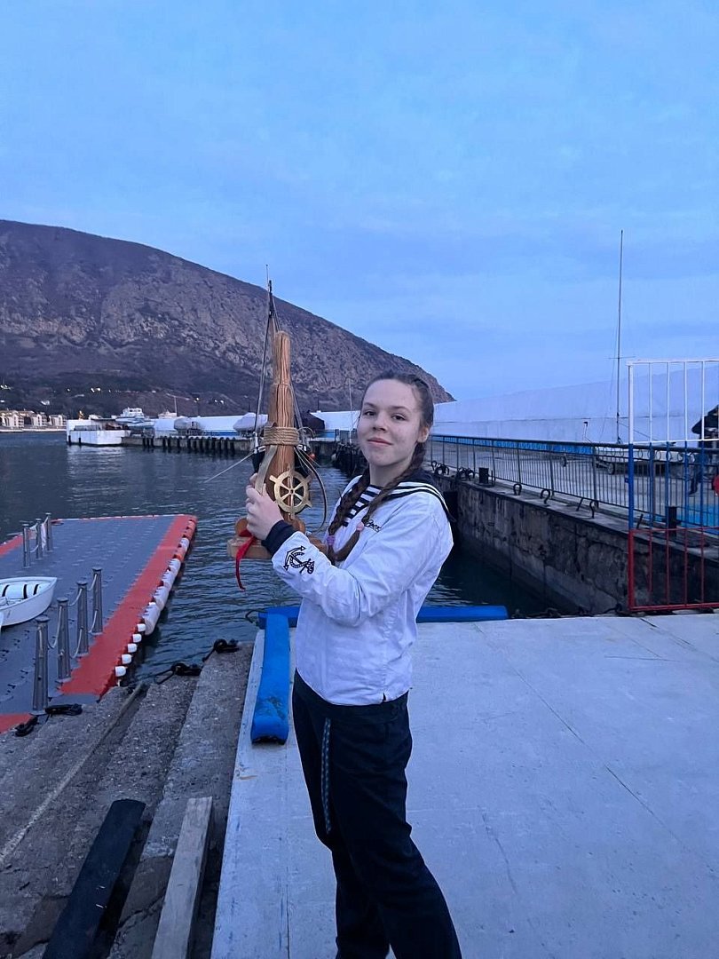 Смена длилась 21 день. За это время Даша стала неподдельным «морским волком» и приняла участие в «Парусной битве». Ее этапы: швартовка, лавировка, такелаж, парусная викторина и, собственно, сама парусная регата. Даша приняла участие в конкурсе швартовки и в парусной регате. Часть дистанции, так как не было необходимого ветра, Даша прошла на веслах. Их отряд выиграл в общем зачете.