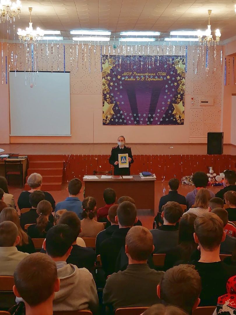 В МОУ Романовская СОШ имени И. В. Серещенко в рамках профилактического мероприятия "Зимние каникулы" прошли мероприятия для обучающихся 1-4, 5-7, 8-11классов. Мероприятия прошли в форме познавательной информационной беседы со школьниками, провела ее старший инспектор по пропаганде безопасности дорожного движения МО МВД России «Балашовский», капитан полиции О.В. Кудашова.