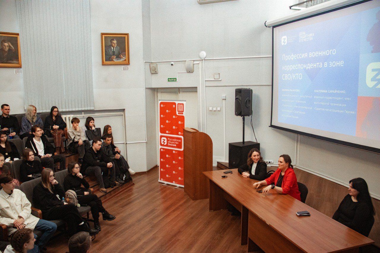 В Саратовской области акция стартовала на площадке СНИГУ имени Н.Г. Чернышевского. Лекторами Общества «Знание» выступили военный журналист, внештатный корреспондент телеканала «Саратов 24», член волонтерской организации «Саратовская ассоциация Героев» Марина Рыжкова и военный корреспондент, член волонтерской организации «Саратовская ассоциация Героев» Екатерина Сарайченко. Они рассказали студентам об особенностях профессии военного журналиста и специфике работы на СВО.