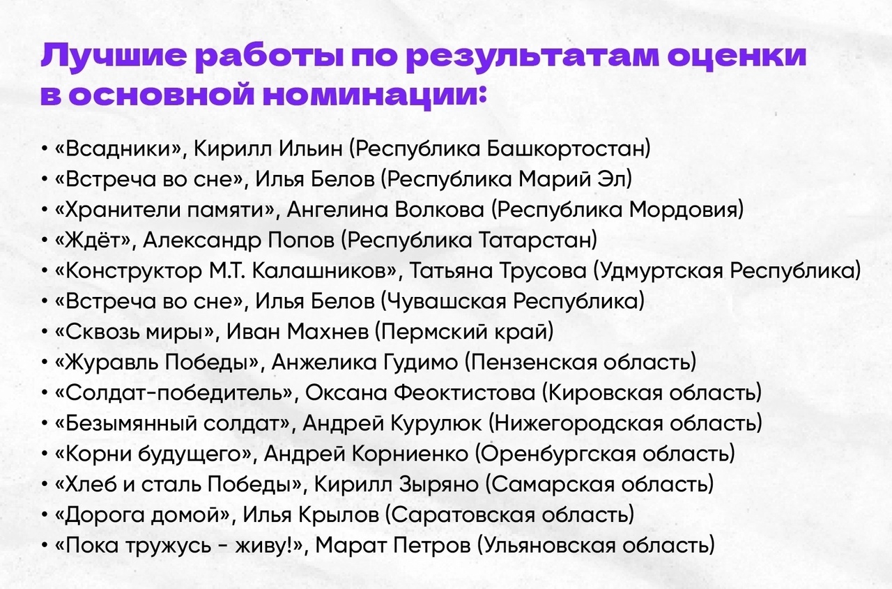 По результатам оценки в основной номинации были выбраны лучшие работы, среди которых и работа нашего земляка Ильи Крылова «Дорога домой».