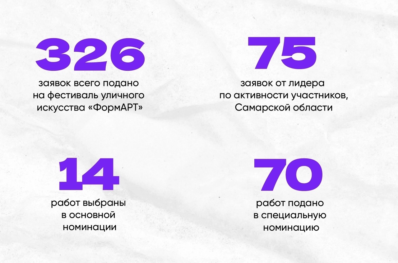 В рамках VI сезона фестиваля уличного искусства Приволжского федерального округа «ФормАРТ» подведены итоги заявочной кампании 2025 года. Всего на участие было подано 326 заявок.