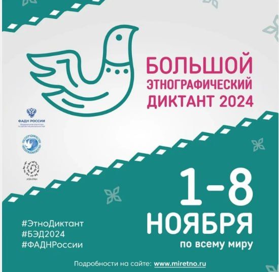 С 1 по 8 ноября 2024 года в девятый раз пройдет Всероссийская просветительская акция «Большой этнографический диктант».