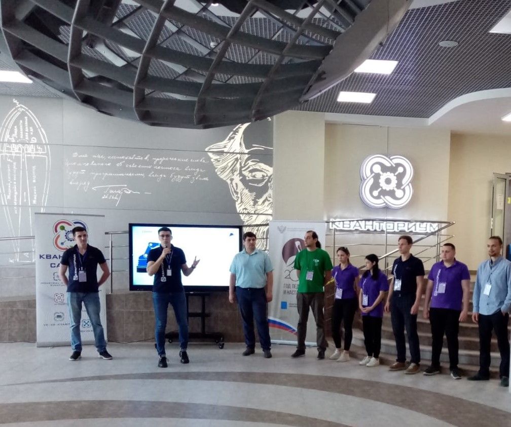 И вот мы в Саратове, на территории СГТУ имени Гагарина. На торжественном открытии в просторном фойе «Кванториума» организаторы конкурса поздравили участников с началом соревнований, пожелали всем удачи. Затем команды разошлись по своим аудиториям. Интересно, что по направлению «Футбол» была заявлена единственная команда.