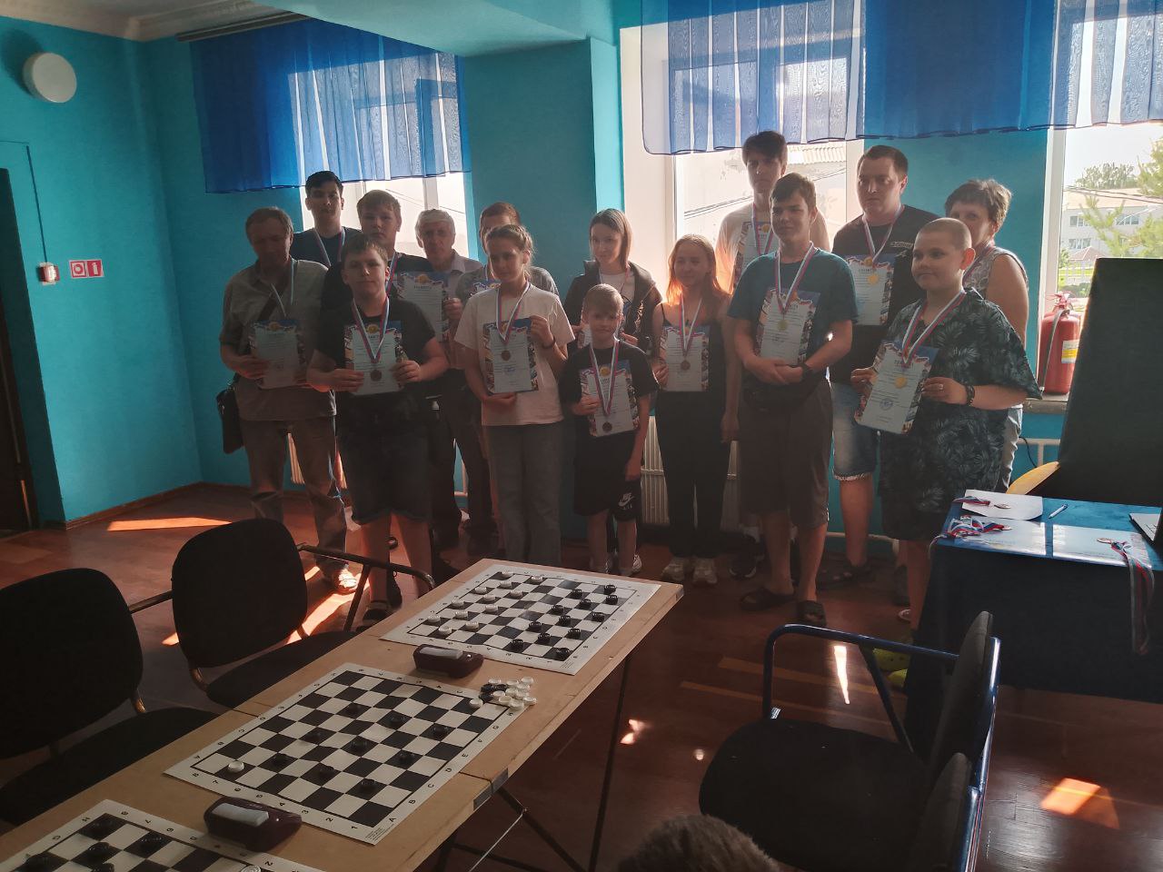 Шахматно-шашечный праздник был продолжен турниром по русским шашкам, в котором участвовали 30 спортсменов из р.п. Романовка и Романовского района, а также из г. Балашова и Балашовского района, г. Калининска и р.п. Ржакса (Тамбовская область). Турнир проходил по швейцарской системе в 9 туров.