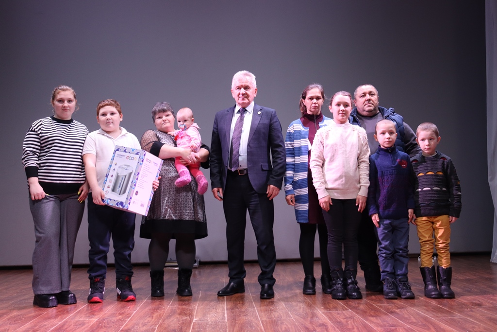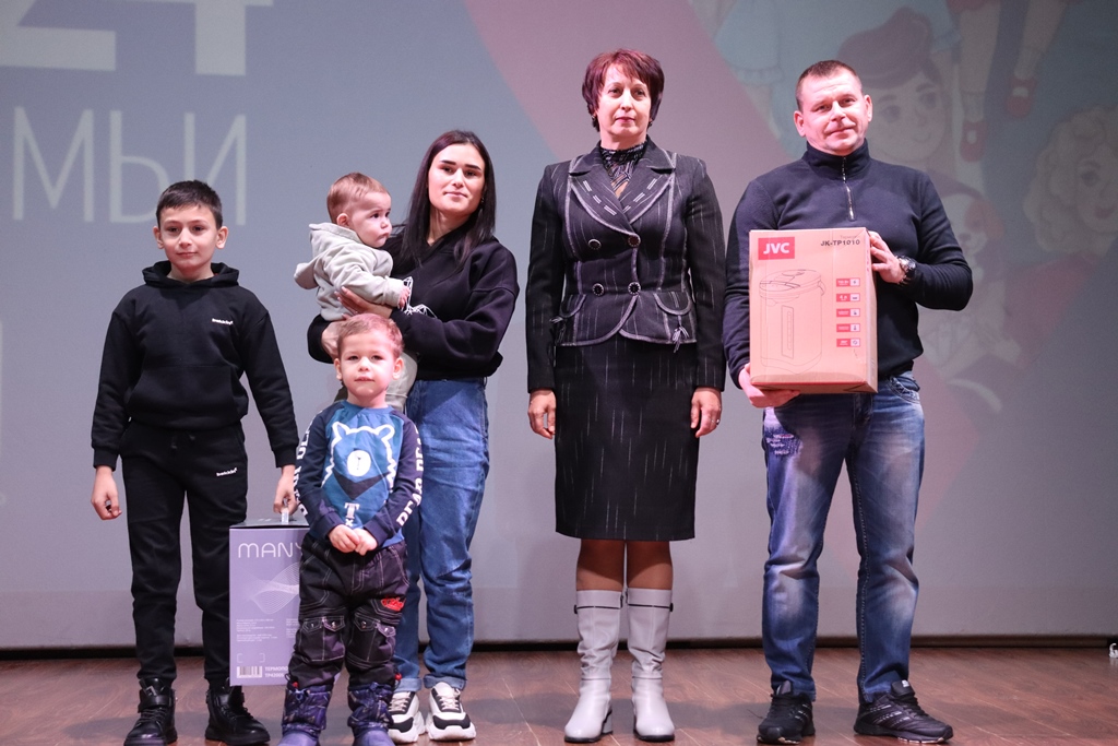 В этом году статус многодетных получили еще две семьи. А.В. и С.Х. Никоян (Ющенко) в этом году стали родителями третьего мальчугана Михаила. В семье внимательно относятся к творческим увлечениям детей и стараются поддерживать их. Семья Кукиных Ильи и Марии в этом году также стала многодетной, теперь здесь два сыночка и лапочка дочка. Всем представителям многодетных семей в этот день А.И. Щербаков и С.П. Хохлова вручили подарки. В завершение мероприятия руководитель кружка «Этот волшебный мир» А.В. Козлова пригласила всех получить мягкие игрушки, продолжая свою постоянную акцию по реставрации игрушек и передаче их тем, кто нуждается. Сотрудники библиотеки подготовили видеообзор книг в поддержку семейных ценностей. А на сцене в этот день в основном также представители многодетных семей, участники художественной самодеятельности - М. Педанова, М. Кабанов, детский коллектив «Родничок», коллектив «Вельвет», театр «Маска» и другие.