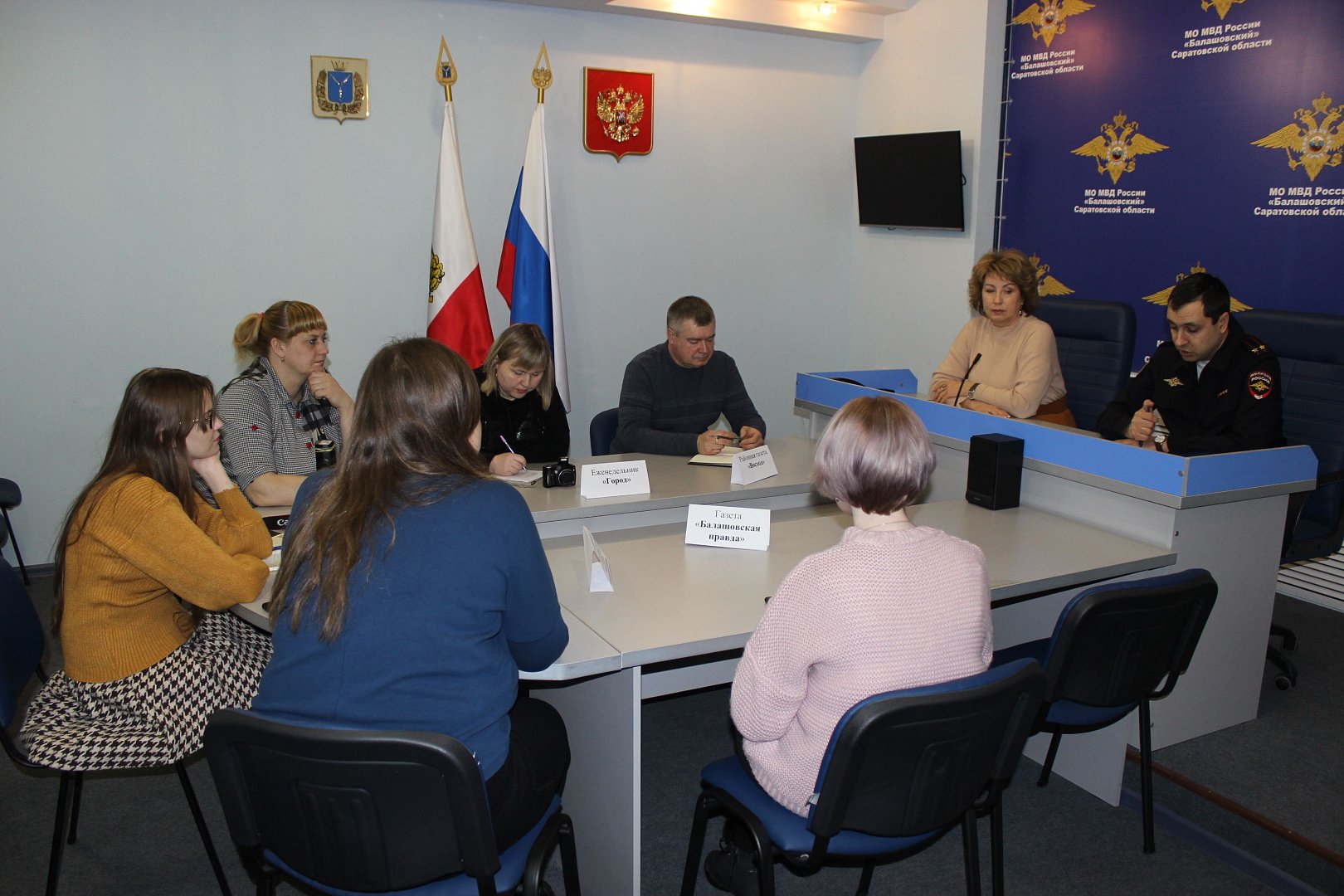 В мероприятии приняли участие руководитель пресс-центра МО «Балашовский» Елена Лукьянова, представители средств массовой информации – еженедельника «Город» и газеты «Балашовская правда» и «Весь Балашов» из города Балашова, «Земля Самойловская» из р.п. Самойловка и главный редактор газеты «Восход» из р.п. Романовка, который является членом Общественного совета при полиции. Также присутствовали представитель отдела информации и общественных отношений администрации Балашовского муниципального района и представитель новостного интернет-сайта «БалашоверЪ».