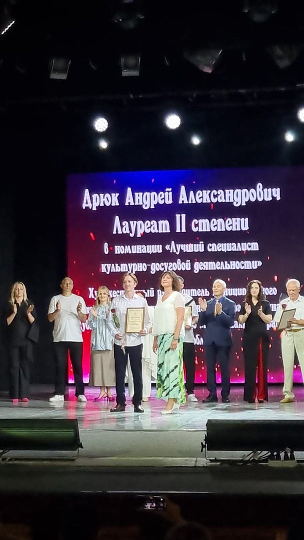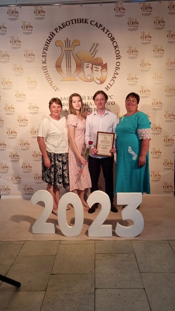 В конкурсе приняли участие 37 специалистов в области культуры из 37 районов Саратовской области. По итогам отборочных этапов в финал вышли 11 участников, среди которых был и художественный руководитель МУК «РЦ клубная система» Андрей Александрович Дрюк. С этим знаменательным событием клубных работников поздравили министр культуры Саратовской области Наталия Юрьевна Щелканова, председатель Саратовской областной организации профсоюза Вера Николаевна Дмитриева и директор ГАУК «СОЦНТ» Валерий Иванович Зимин. Решением компетентного жюри Андрей Александрович Дрюк был награжден дипломом лауреата II степени и сертификатом победителя! От всей души поздравляем нашего финалиста с высокой наградой и желаем ему творческих успехов!