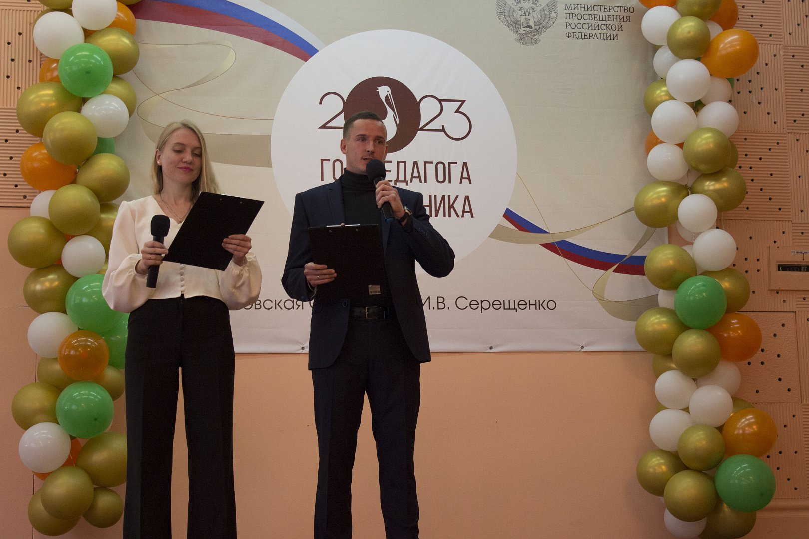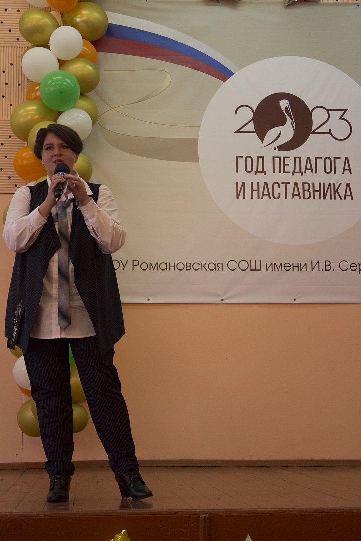 В актовом зале Романовской СОШ состоялся праздничный концерт, посвященный Дню учителя. В зале в этот день - педагоги районных школ, учреждений дополнительного образования, дошкольных учреждений, спортивной школы, ветераны педагогического труда. Праздник проводится в объявленный президентом РФ Год педагога и наставника, а значит, здесь присутствует особая торжественность. Ведущими дня в этот раз стали супруги Горкавченко Владимир и Екатерина, молодые педагоги Романовской СОШ, представители большой учительской династии.