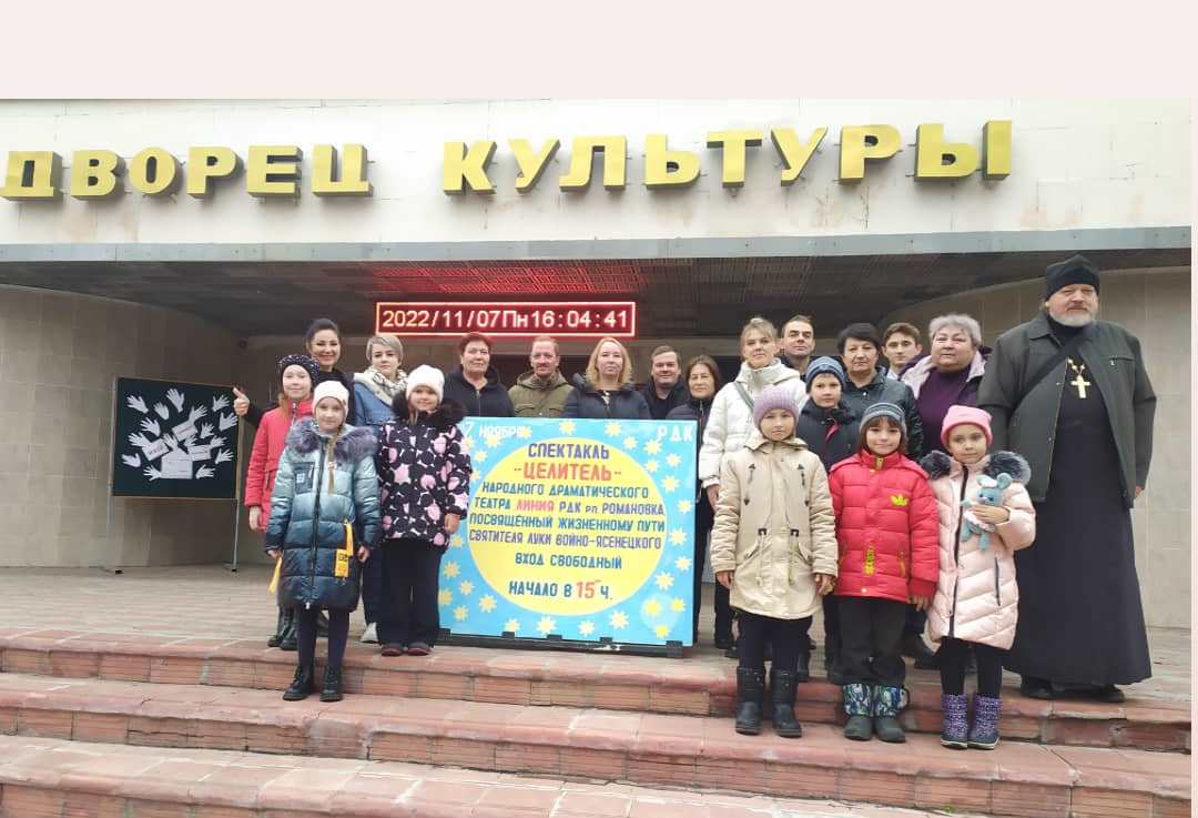 Перед началом спектакля к жителям и зрителям обратился настоятель храма в честь Архистратига Божия Михаила р.п. Самойловка иерей Константин Колпаков. А далее был показан спектакль, рассказывающий о жизни Святителя Луки Симферопольского и Крымского (В.Ф. Войно-Ясенецкого), его пребывании в Романовке, основанный на воспоминаниях и документах. Для жителей р.п. Самойловка это стало большим подарком, многие рассказывали, что открыли для себя это имя, другие делились, что многих моментов из жизни и не знали. Однозначно то, что этот живой рассказ о святом, краеведческий спектакль, который, как проповедь о его жизни несут артисты спектакля, никого не оставляет равнодушным. Напомним, что спектакль поставлен в 2022 году режиссером народного театра «Линия» Л.А. Педановой и был приурочен к Дню памяти Святителя Луки Симферопольского и Крымского (В.Ф. Войно-Ясенецкого).