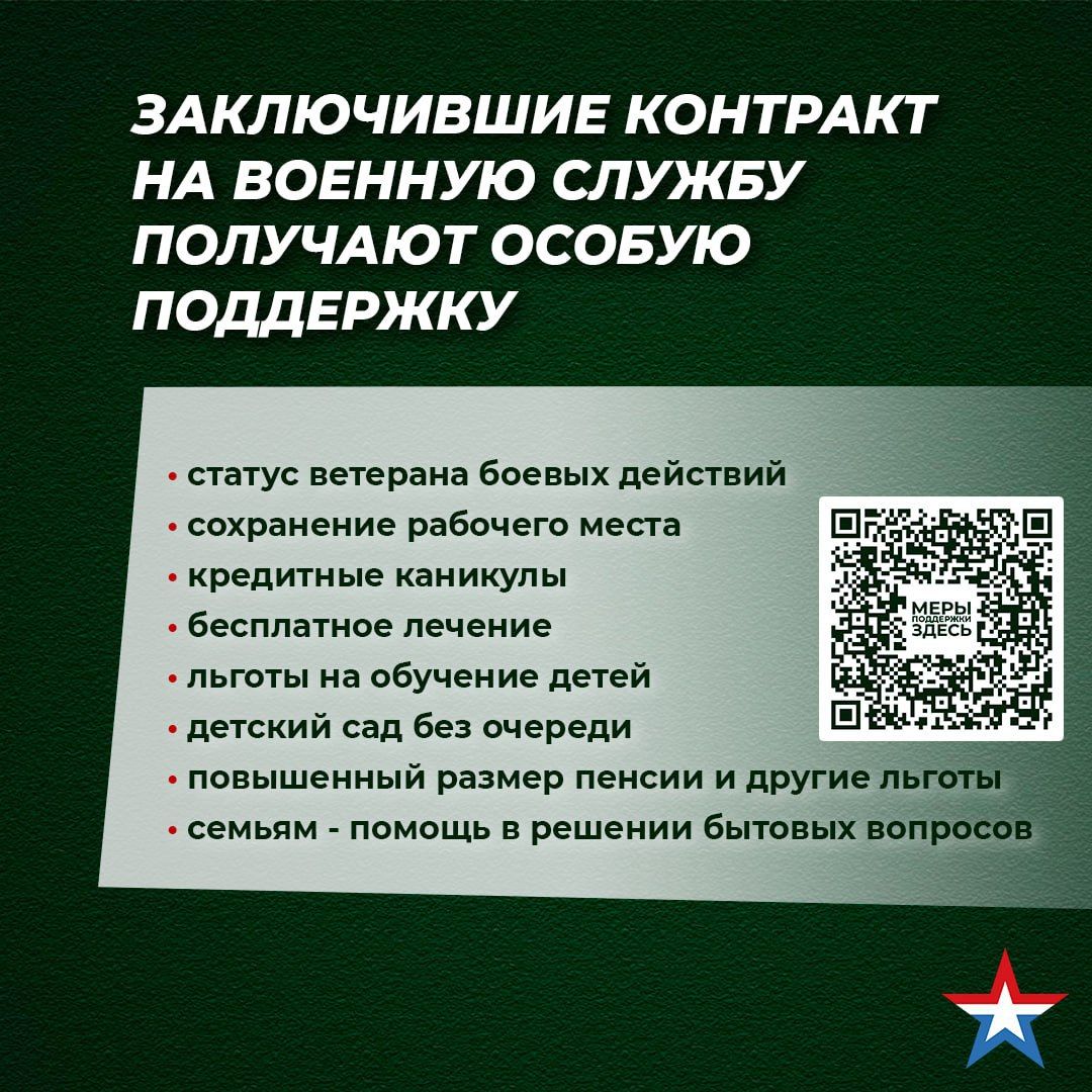 Граждане, заключившие контракт о прохождении военной службы с 1 августа по 31 декабря 2024 года, получат единовременную выплату в размере 400 тысяч рублей. Она была увеличена вдвое по решению Президента Владимира Путина.