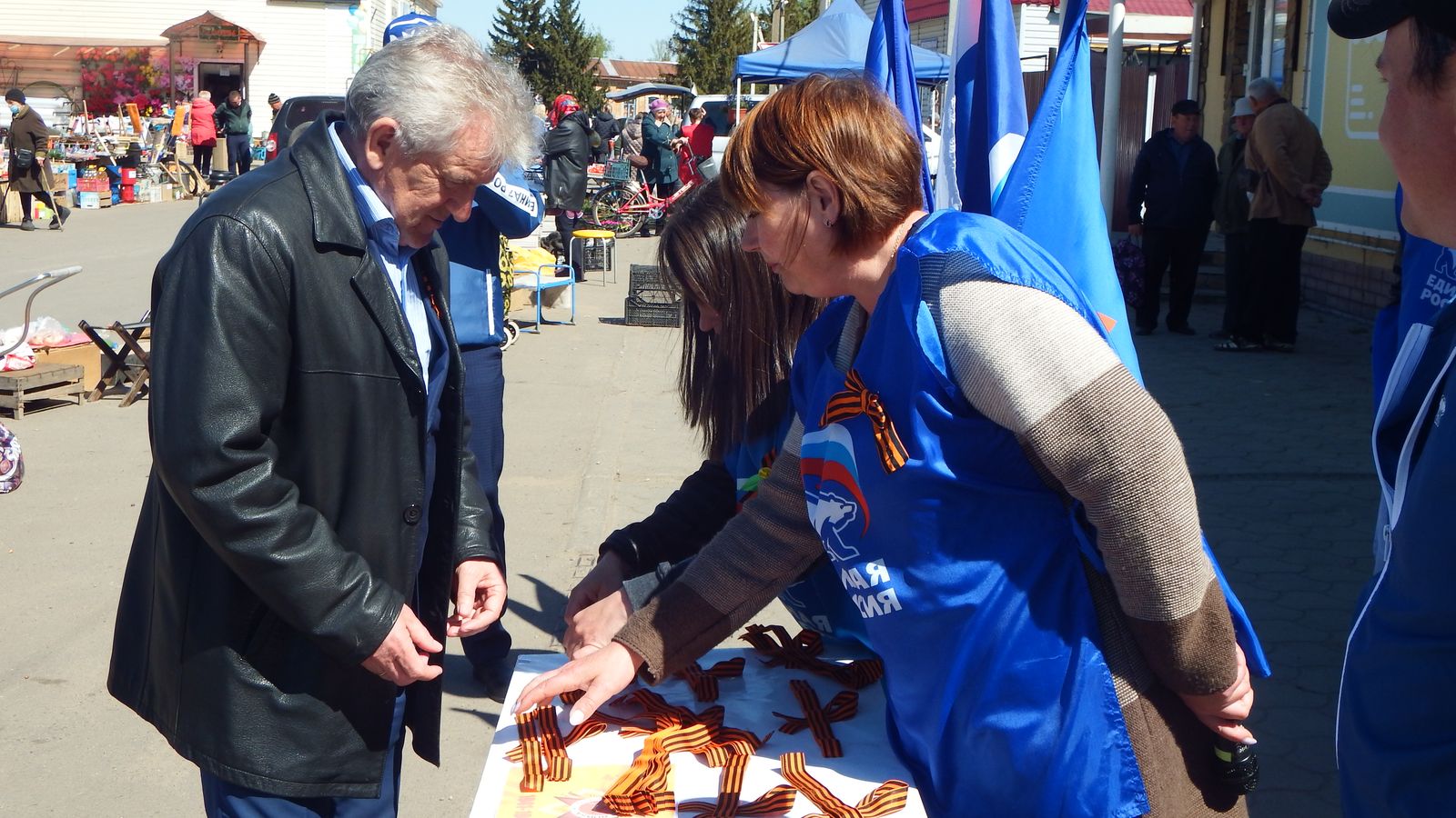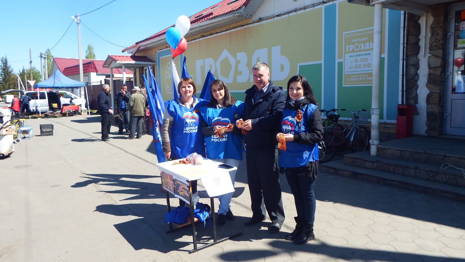 В Романовке перед 9 мая состоялась замечательная акция, организованная местным отделением ВПП «Единая Россия» при поддержке отдела культуры администрации района и участии волонтеров из Дома пионеров и школьников. Во время ее организаторы и волонтеры расположились прямо в центре у магазина «Гроздь». Исполнялись наши любимые военные песни, а ребята дарили символ нашей Победы –Георгиевскую ленту проходящим людям. Многие из проходящих людей просто подходили сами и с гордостью, с уважением размещали ленту у себя на груди. Среди них были люди всех возрастов и что очень примерно –много молодых лиц. Участие в акции принял и глава Романовского района А.И. Щербаков, который также получил Георгиевскую ленточку.