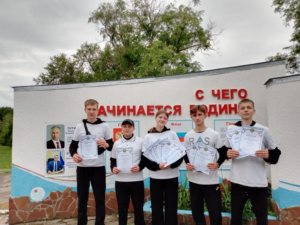 Наш район на слете в группе начинающих представляла команда «Юность» МУ ДО «ДПиШ» р.п. Романовка: Максим Телков, Александр Пахомов, Екатерина Глухова, Владимир Просолович, Степан Лопатин, руководитель команды Н.Л. Суздаленко, сопровождающий педагог Н.И. Любовенко.