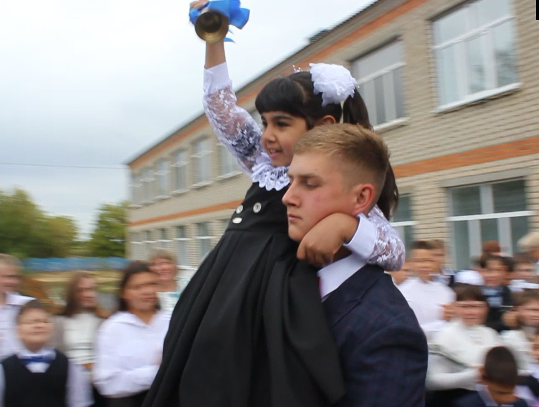 Наступает кульминация праздника. Право дать первый звонок предоставляется выпускнику 11 класса Владиславу Дружину и ученице 1 класса Жанне Арутюнян. Серьезный Влад и сияющая Жанна несколько раз обходят по кругу строй учеников. Заливистый колокольчик ставит звонкую точку в праздничной линейке. С юбилеем, дорогая школа!