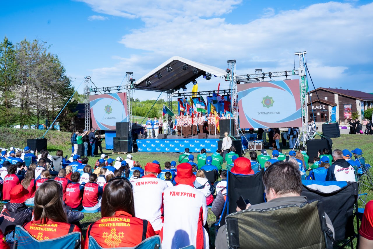 На поляне горнолыжного курорта "Хвалынь" состоялась традиционная торжественная церемония открытия Лагеря "Туриада-2025" .