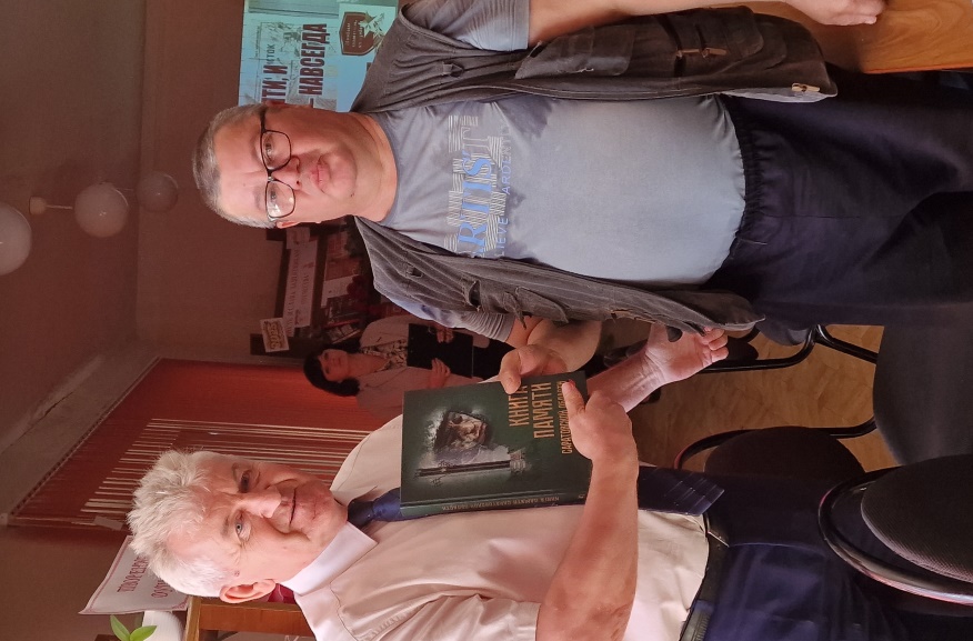Сотрудники центральной библиотеки им. И.И. Фешина Т.Н. Кондратьева и А.А. Канищева подготовили небольшую программу о подготовке Книги памяти. Кроме того, день, в который проходила встреча, был юбилейным со дня рождения ветерана Великой Отечественной войны, чье имя носит библиотека, Почетного гражданина района - И.И. Фешина. В стенах краеведческой гостиной имени Ивана Ивановича расположилась теперь музейная экспозиция СВО. И родные и близкие всегда могут передать сюда экспонаты из своего личного архива для сохранения. Потому что, как было отмечено на встрече, главное - это память и ее надо хранить для потомков. А в районе продолжается работа по сбору информации для включения в очередной том Книги памяти.