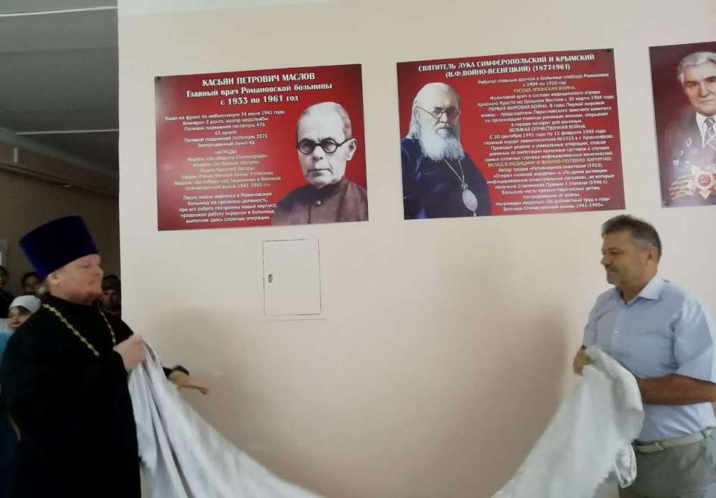 В этот знаменательный год юбилея Победы в центральной районной больнице появились стендовые доски, напоминающие о подвиге двух главных врачей данной больницы. Они посвящены Святителю Луке Симферопольскому и Крымскому (В.Ф. Войно-Ясенецкому) и Касьяну Петровичу Маслову. В биографии известного врача и архипастыря православной церкви были не только три войны, где он высоко исполнял свой врачебный долг, но и труды, которые оказали неоценимый вклад в военно-полевую хирургию страны. Его учебники становились настольной книгой для оперирующих хирургов, а его открытие в области регионарной анестезии было революционным не только в начале 20 века. Возможно, с одним из открытий был знаком и главный врач Романовской больницы, который пришел работать в 1933 году на свой новый пост. Касьян Петрович Маслов внес значительный вклад в развитие медицинского обслуживания в Романовском районе, а 24 июня 1941 года, когда началась война, в числе первых отправился на фронт и прошел его до последних дней. Вернулся на свою должность уже в 1946 году, награжденный множеством орденов и медалей, среди которых орден Красной Звезды, орден Отечественной войны II степени, медаль «За боевые заслуги», медаль «За оборону Сталинграда». Но и в мирное время он продолжал поражать профессионально выполненными операциями, занимался строительством новых корпусов больницы, награжден орденом «Знак Почета».
