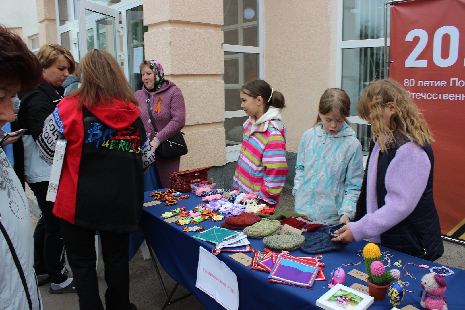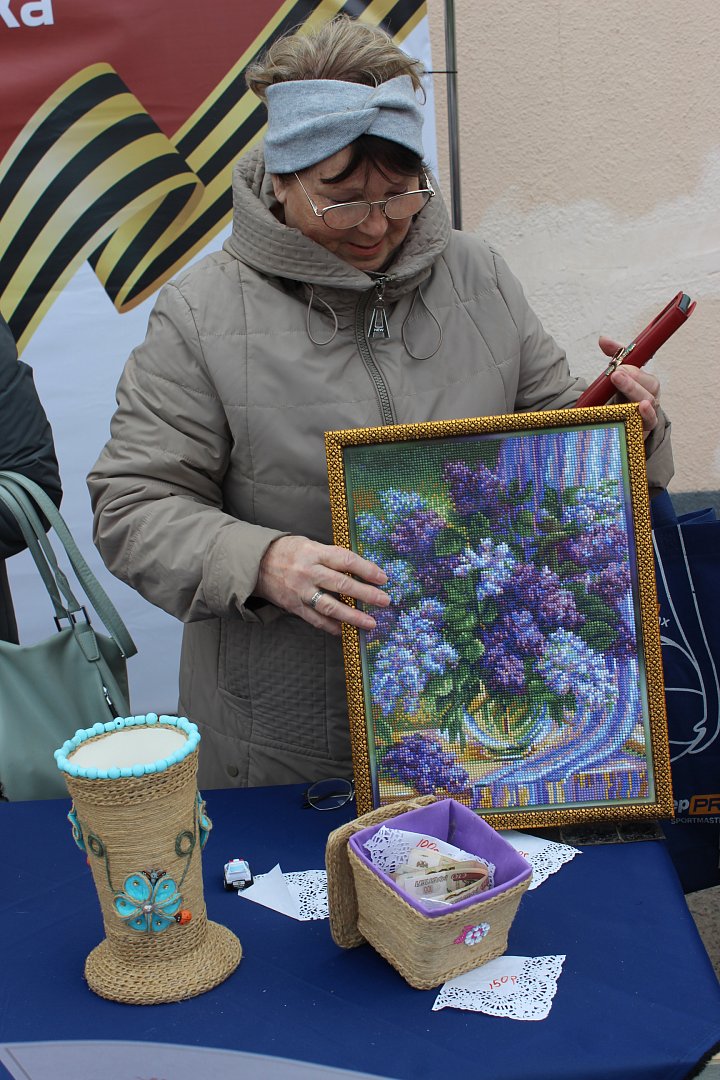 На территории кинотеатра «Октябрь» ярмарка встречала жителей и гостей нашего поселка разнообразием изделий ручной работы, которые были выполнены в различной технике: живопись, вязание, бисероплетение, декупаж, кулинария, канзаши, изделия из дерева и ткани, а также многое другое. Активное участие приняли работники сельских Домов культуры, работники районного Дома культуры и неравнодушные жители, гости нашего района. Огромный вклад внесли А.Э. Пчелинцева, Н.И. Бочерова, Т. Склярова, И.Г. Кузнецова, Н.В. Кизьякова, А.А. Загорулько, С.В. Александрова, О.А. Крюченкова, также удивительная творческая семья: Т.Ю. Гудырина с дочерью Соней, которые предоставили огромное количество вязаных мягких игрушек, брелков и внесли весомый вклад в общее пожертвование. Активную продажу вели самые юные участники Мирослава Педанова, Валерия Штепа, Полина Павленко, они привлекали внимание покупателей закличками собственного сочинения. Хотелось бы отметить женщину, которая пожелала оказать финансовую помощь и при этом остаться неизвестной. На все вырученные от продажи средства в сумме 36500 рублей были закуплены медикаменты по запросу военного госпиталя.